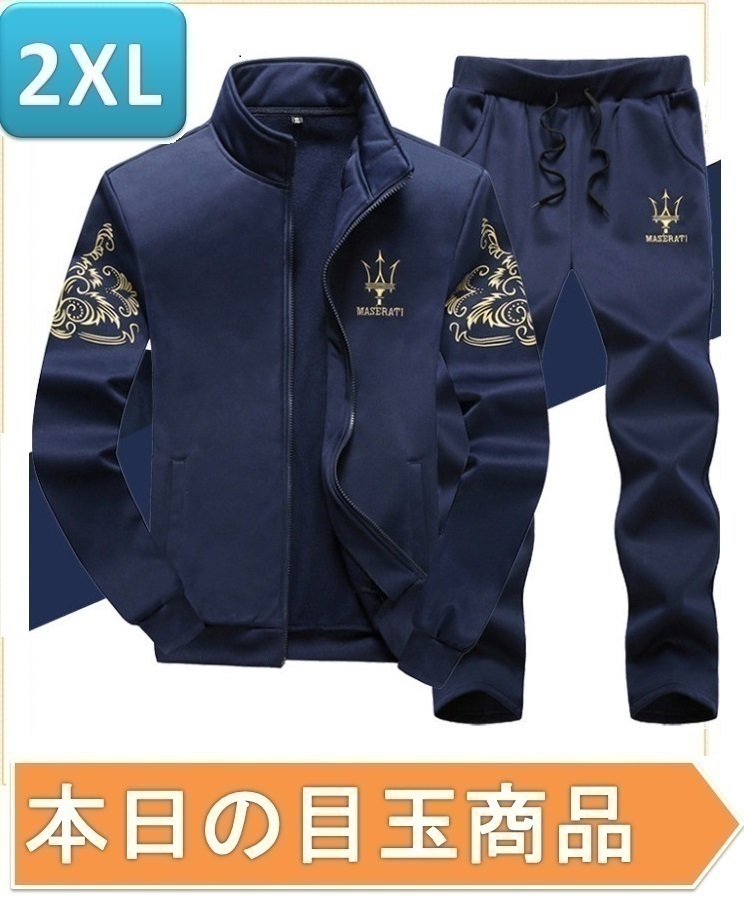 【今日の目玉】メンズセットアップ 上下セット ☆196 ネイビー 2XLサイズ ジャージ スウェット お兄系 部屋着 おしゃれ