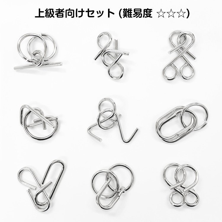 ◆知恵の輪9点セット 選べる難易度 知育玩具 暇つぶし ボケ防止に パズルリングセット