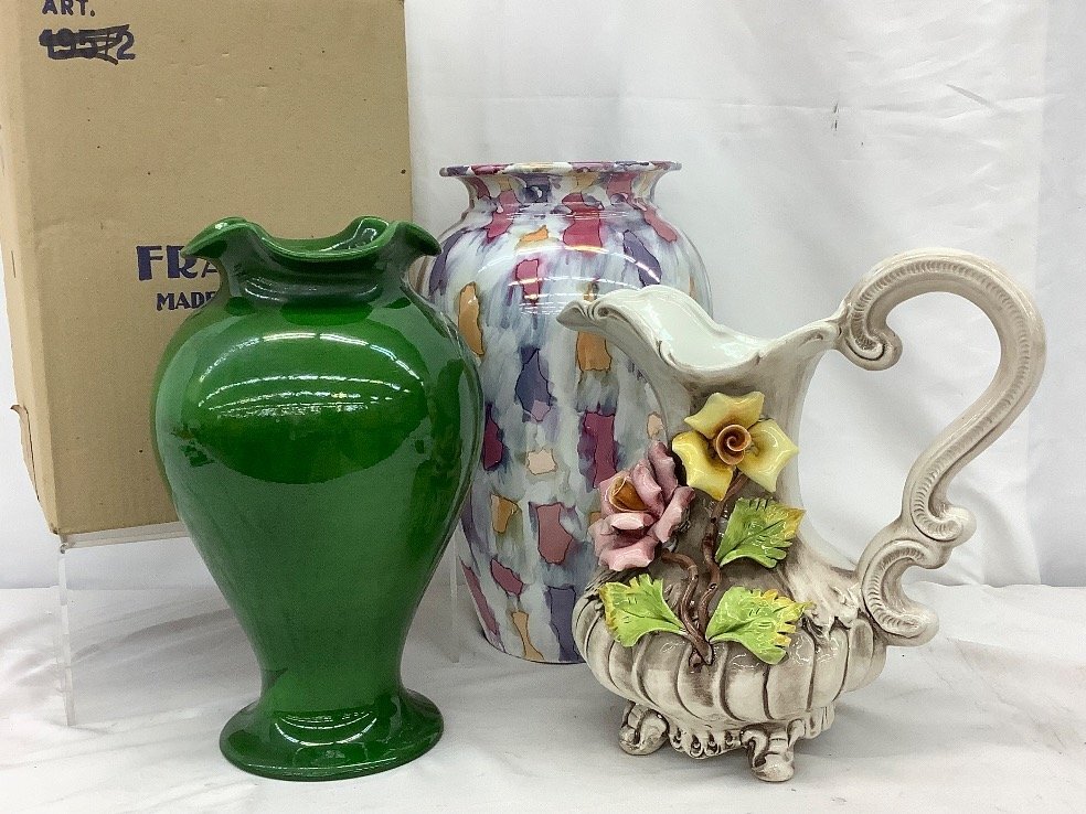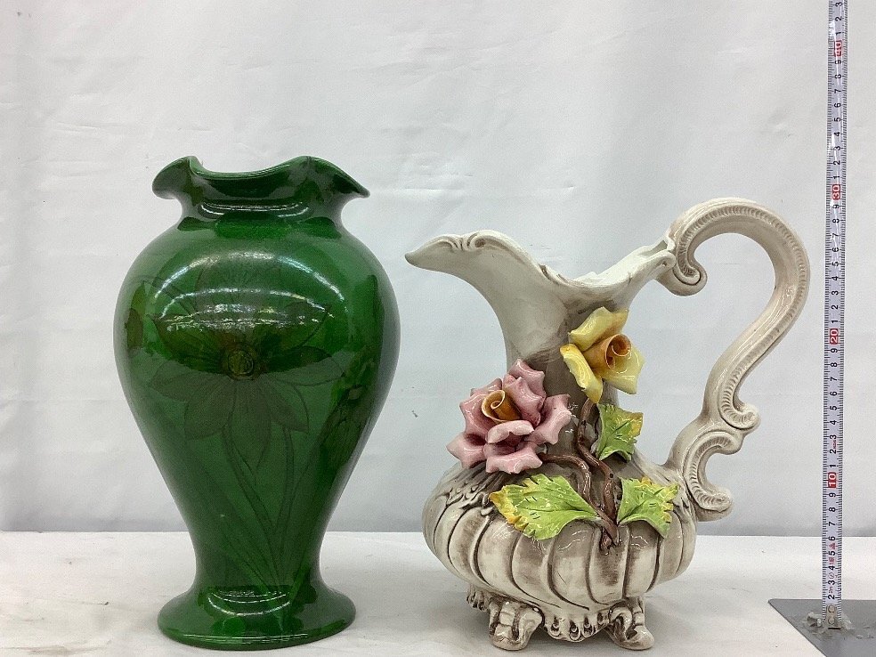 PAOLI他 イタリア製フラワーベース/花瓶/ピッチャー/花柄/陶器 3点まとめ ACB 中古品