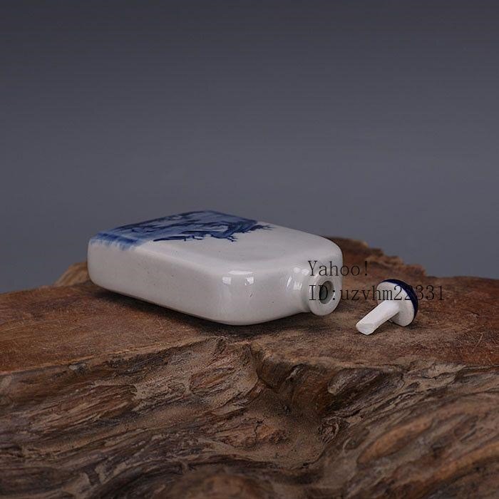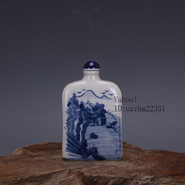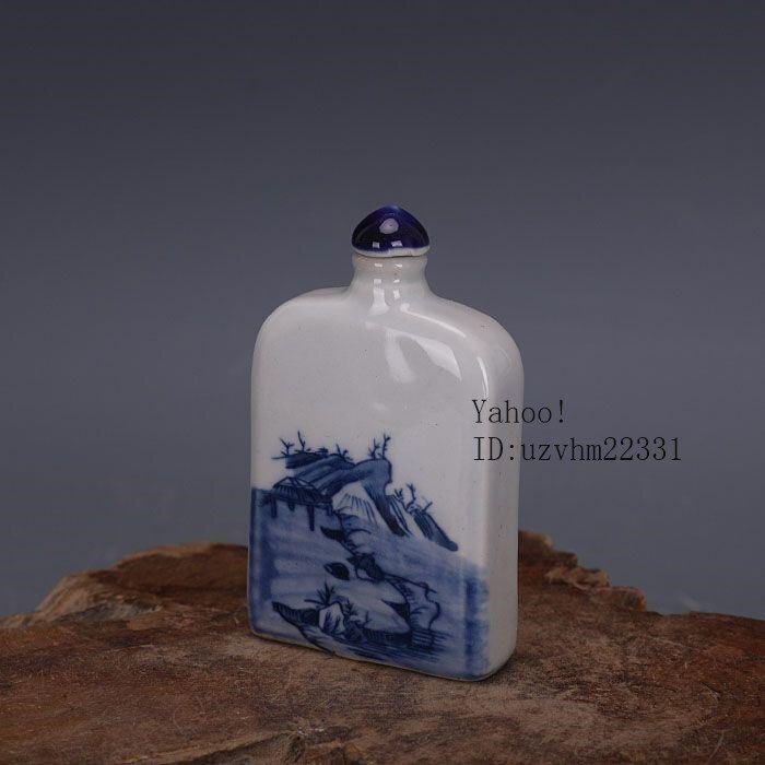 清代官窯青花山水紋鼻煙壺扁瓶 清代官窯青花山水紋