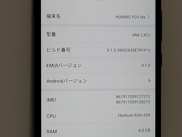 ★【66654WM】 ジャンク HUAWEI P20 lite ANE-LX2J ミッドナイトブラック 1円 ! 1スタ !