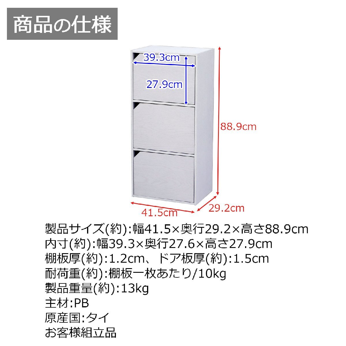 | 商品名 | 扉付きカラーボックス 3段 ホワイト 木目調 |