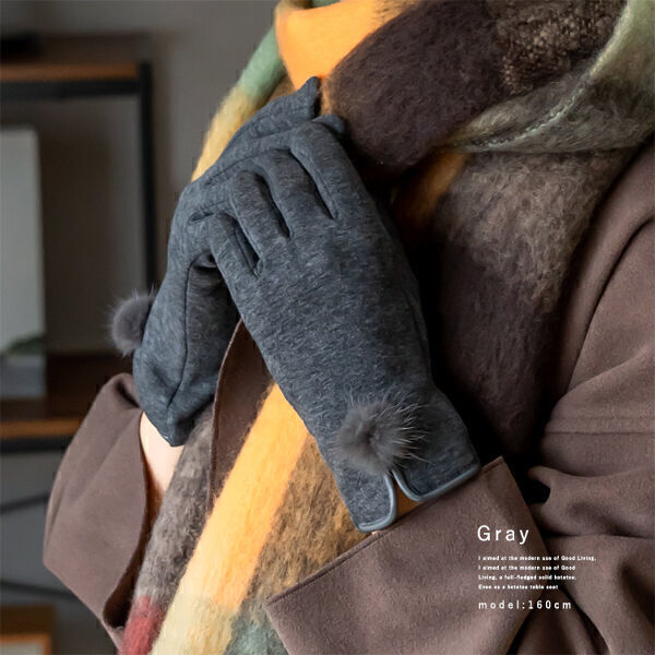 ヴィータフェリーチェ VitaFelice 手袋 レディース手袋 抗菌 グローブ ミンクファー付き スマホ対応 ぶくろ (GRAY) ブランド:VitaFelice