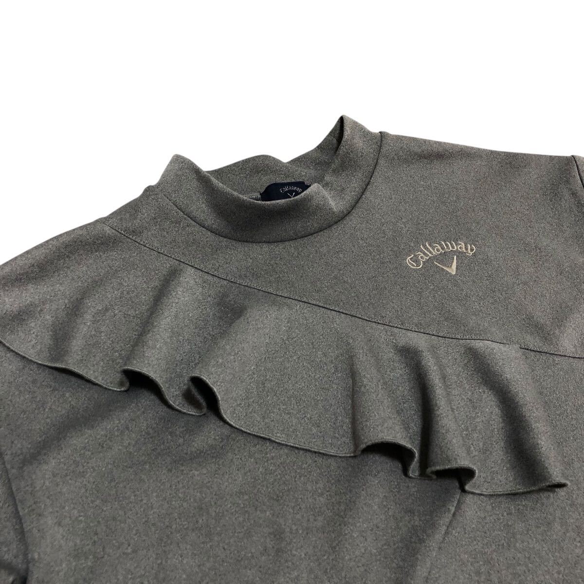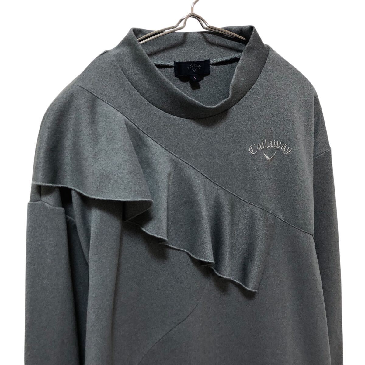 12NG018- Callaway キャロウェイGOLF ゴルフ ウェア フリル トップス モックネック スウェット ロゴ 刺繍 レディース L グレー