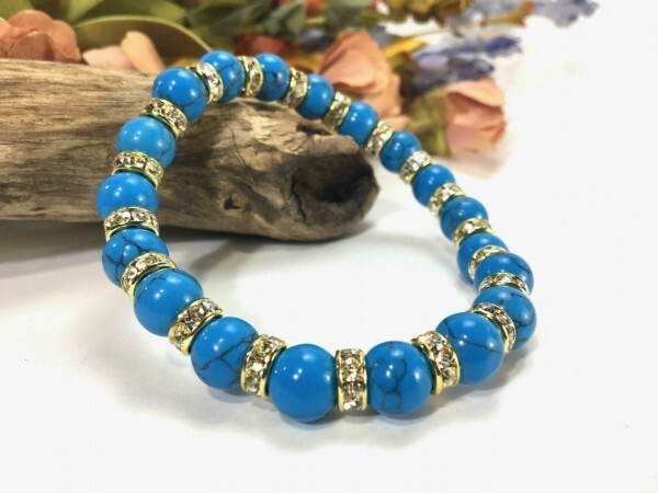 こちらは、10mm玉のターコイズを使用したパワーストーンブレスレットです。間にはロンデルを挟み高級感あるブレスレットに仕上げています。石大きさは腕にも馴染みやすいように10mm玉を使用して、サイズは内径約18cmです。(サイズ調節も無料で承っています。サイズ変更の場合は落札後、取引ナビにてご一報くださいませ。) 数に限りがございますので気になる方はお早めにどうぞ。