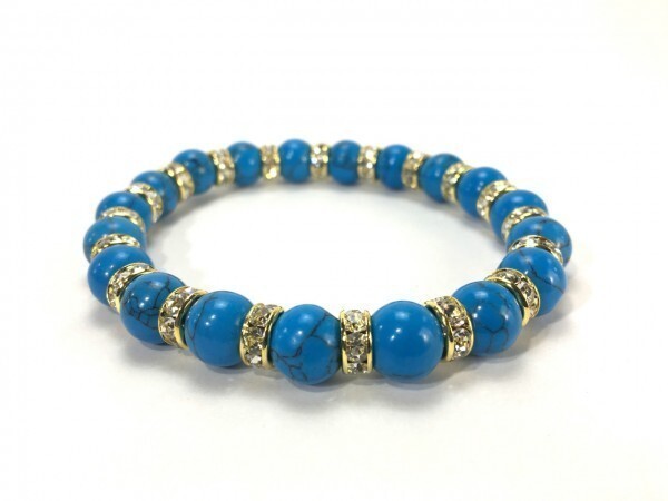 ターコイズ パワーストーン ブレスレット 10mm メンズ・レディース (ゴールド) 開運 浄化 数珠ブレス ☆