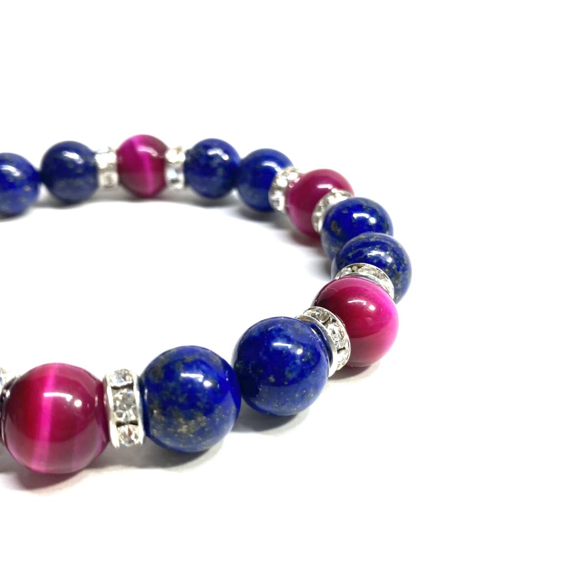 ラピスラズリ&ピンクタイガーアイ パワーストーン ブレスレット 天然石ブレス (シルバー) 10mm メンズ・レディース 金運 ☆