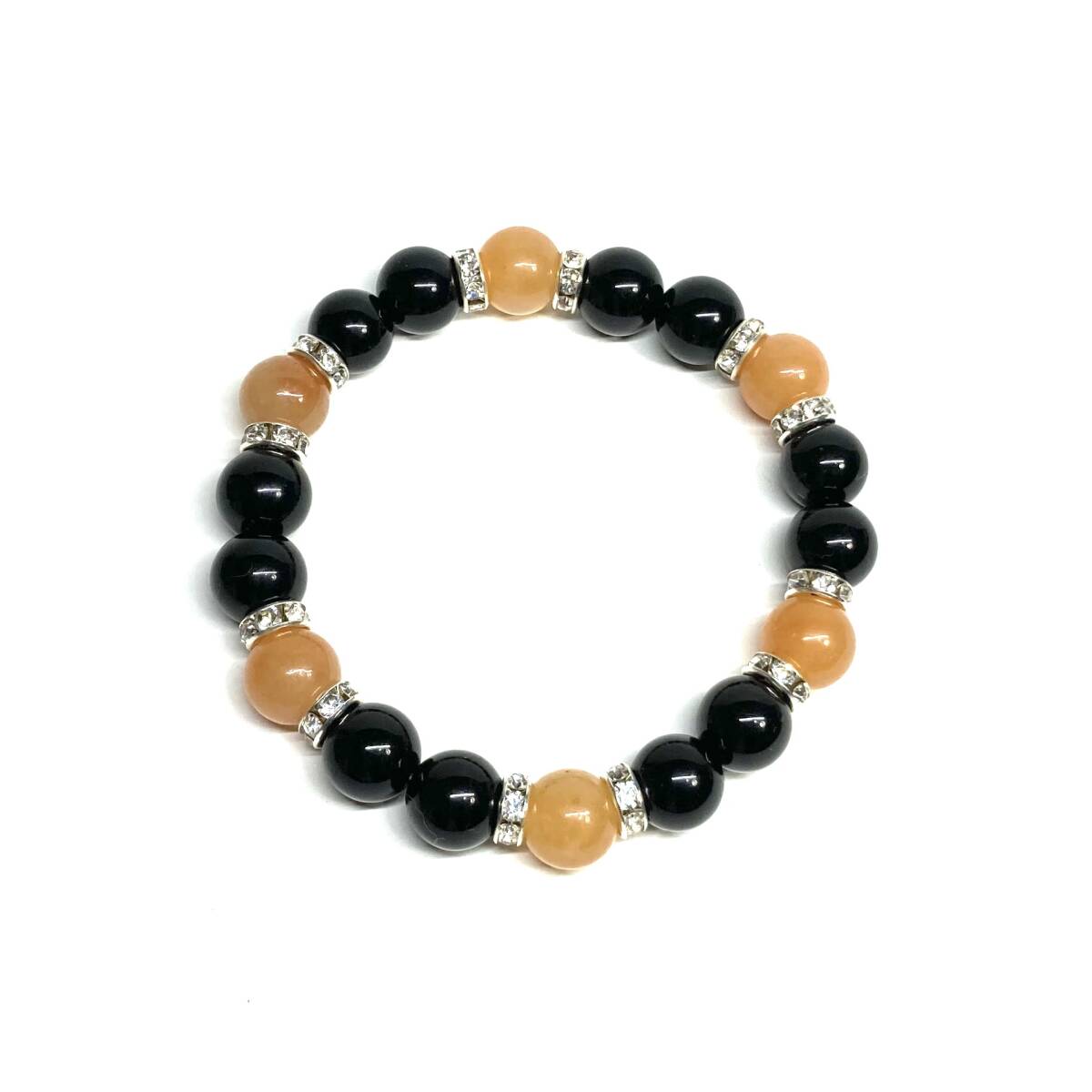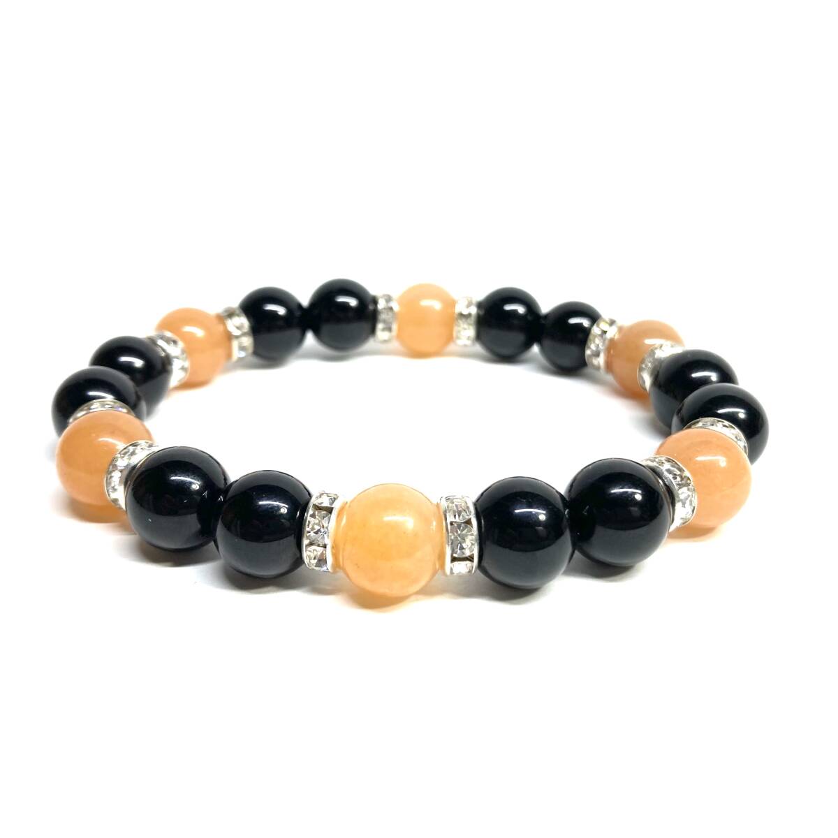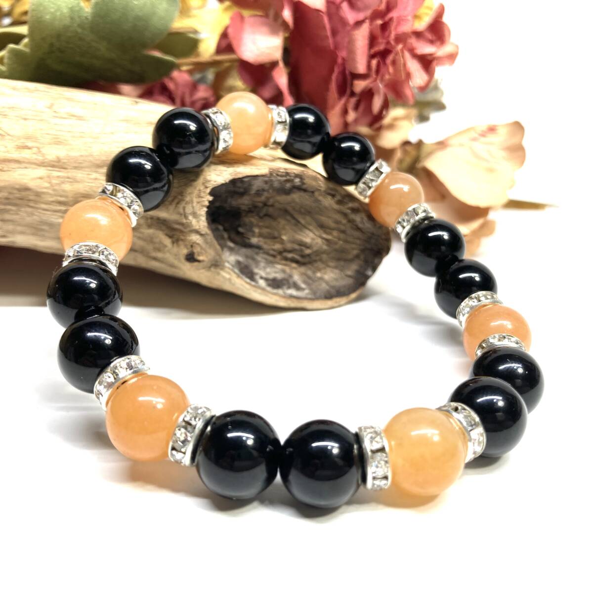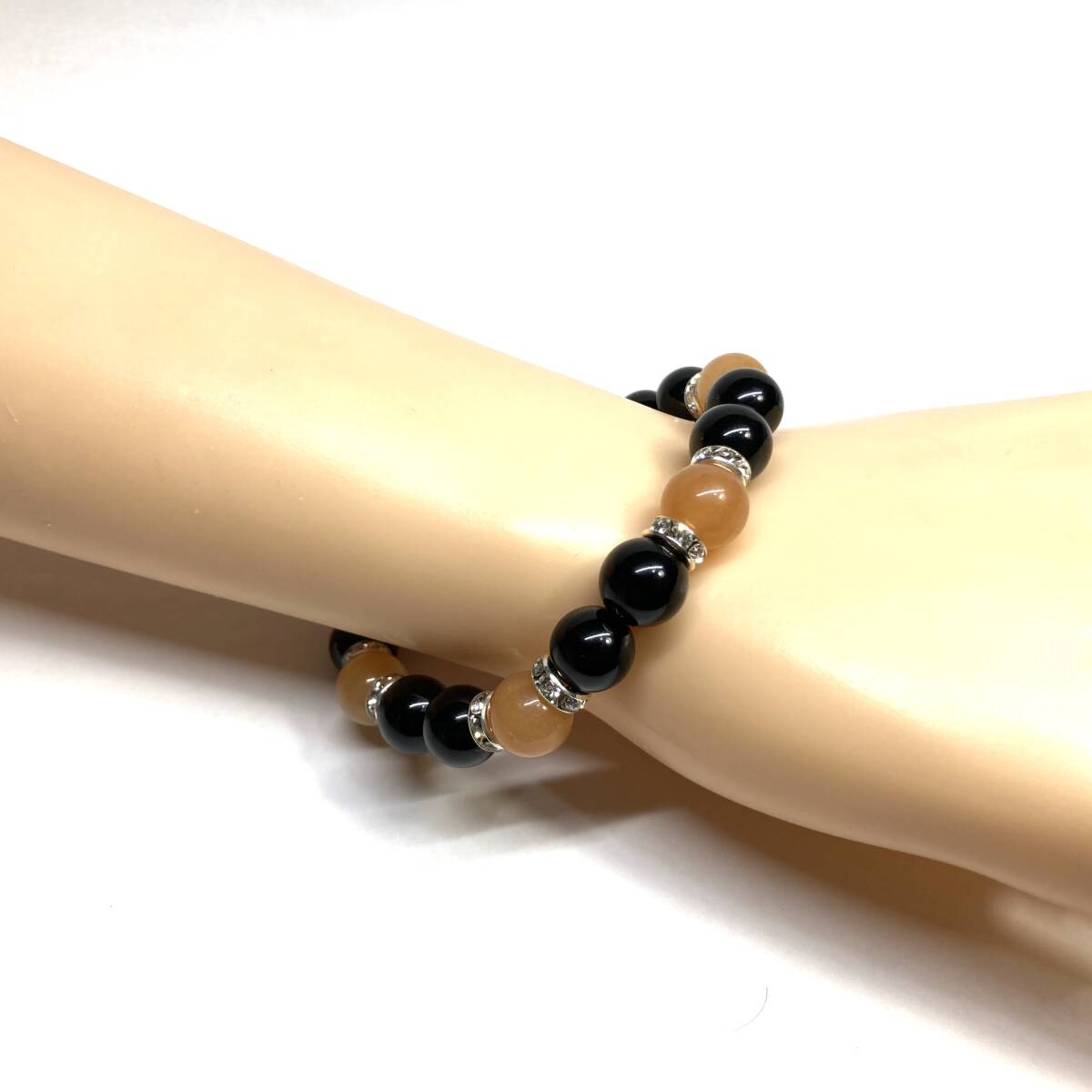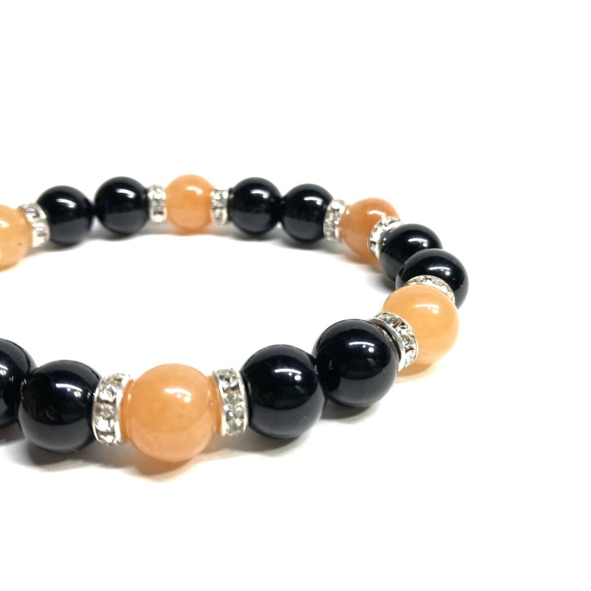 こちらは、モリオンとレッドアベンチュリンを組み合わせたパワーストーンブレスレットです。間にはロンデルを挟み高級感あるデザインに仕上げております。石大きさは腕にも馴染みやすいように10mm玉で内径約18cm(伸可能)です。(サイズ変更の場合は取引ナビにてご連絡をお願いします。) 数に限りがございますので気になる方はお早めにどうぞ。