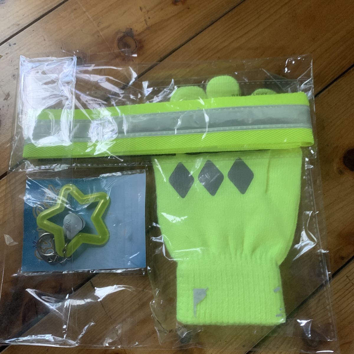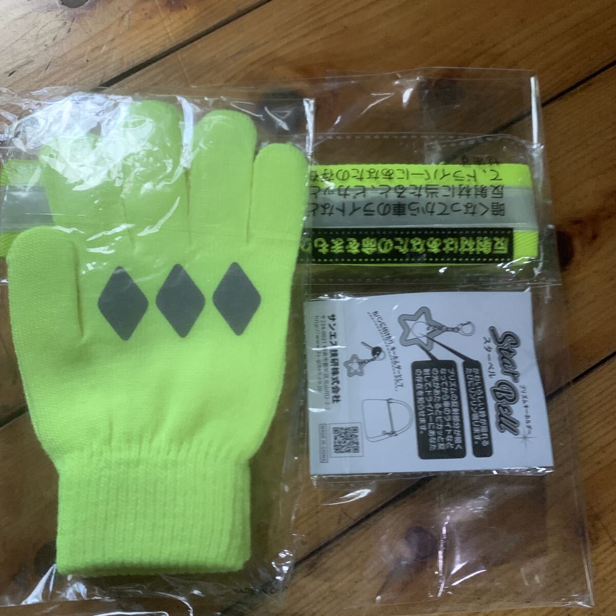 蛍光・反射 手袋・タスキ・キーホルダー 3点セット 〜〜〜夜の散歩・自転車に〜〜〜 匿名配送