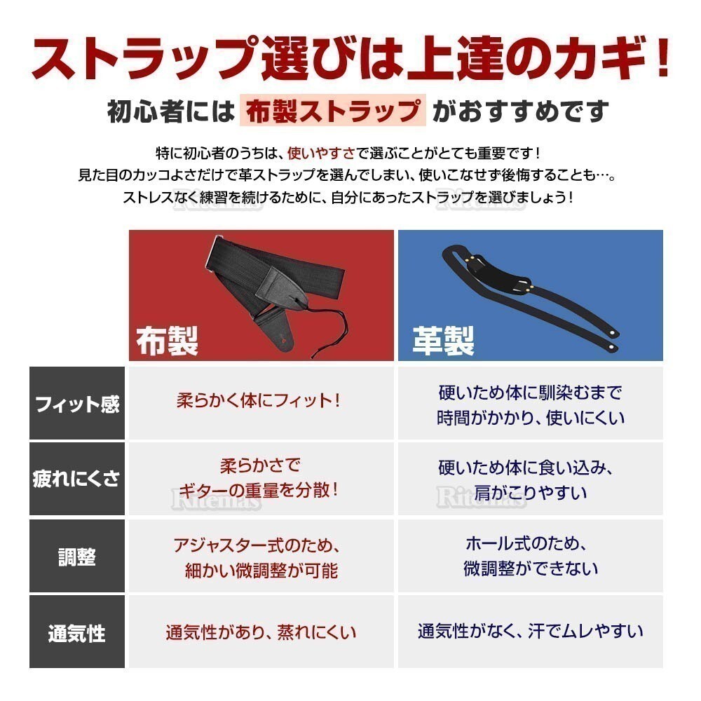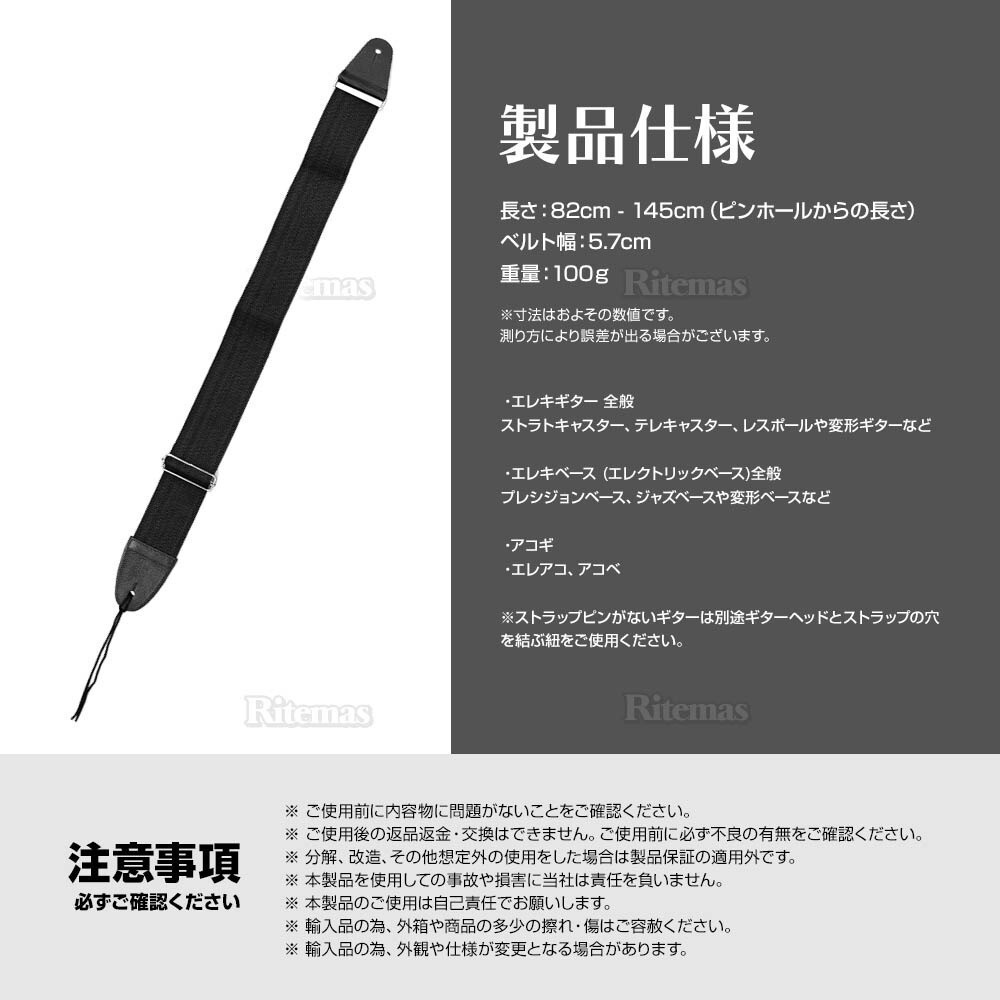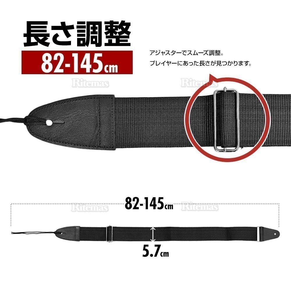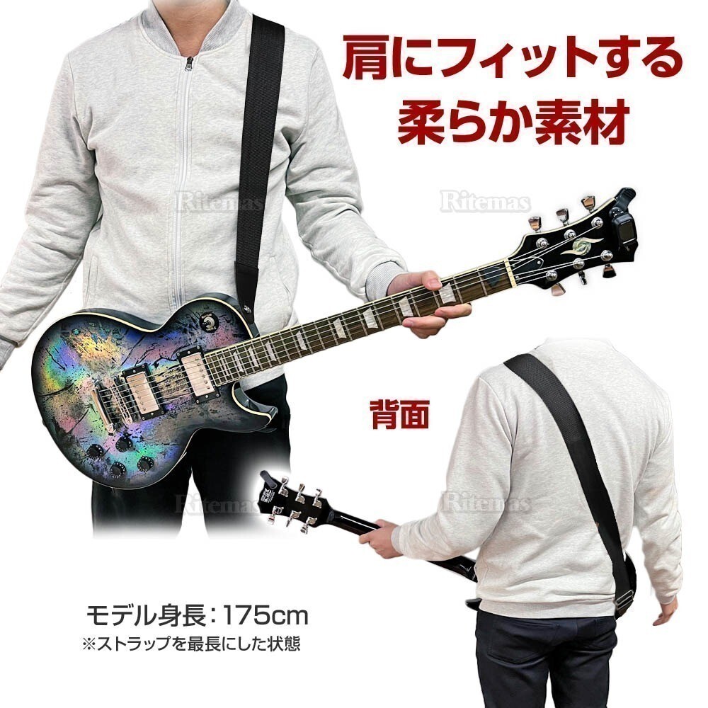 ギターストラップ ギター ストラップ ナイロン 87cm-155cm 長さ調整可能 ベース エレキ アコースティック アクセサリ 楽器 演奏 道具 黒