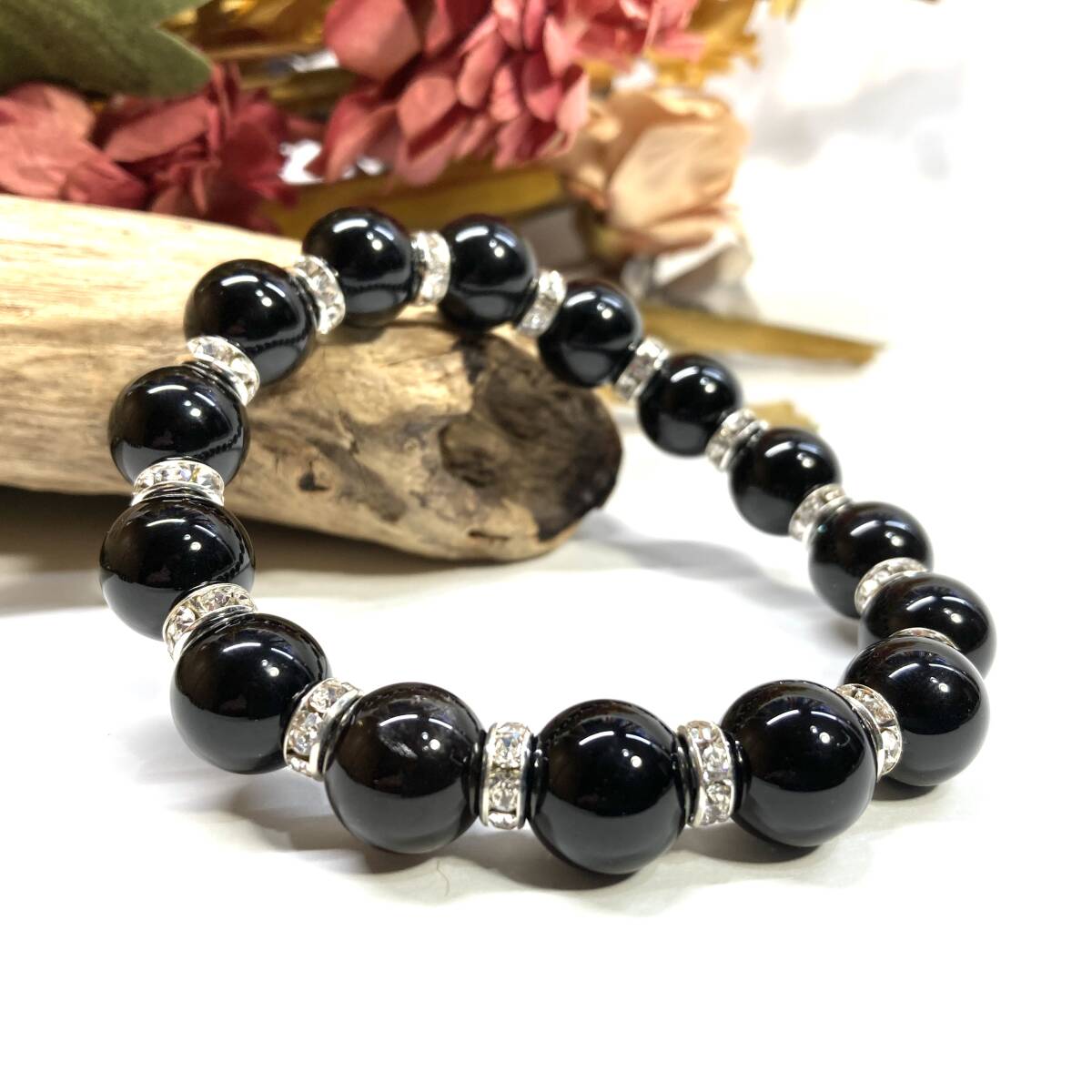 こちらは、12mm玉のモリオンを使用したパワーストーンブレスレットです。間にはロンデルを挟み高級感を演出しております。男女問わずどんなコーディネートとも合わせ易いブレスレットです。サイズは内周約18cmです。(サイズ変更の場合は取引ナビにてご連絡をお願いします。) 数に限りがございますので気になる方はお早めにどうぞ。