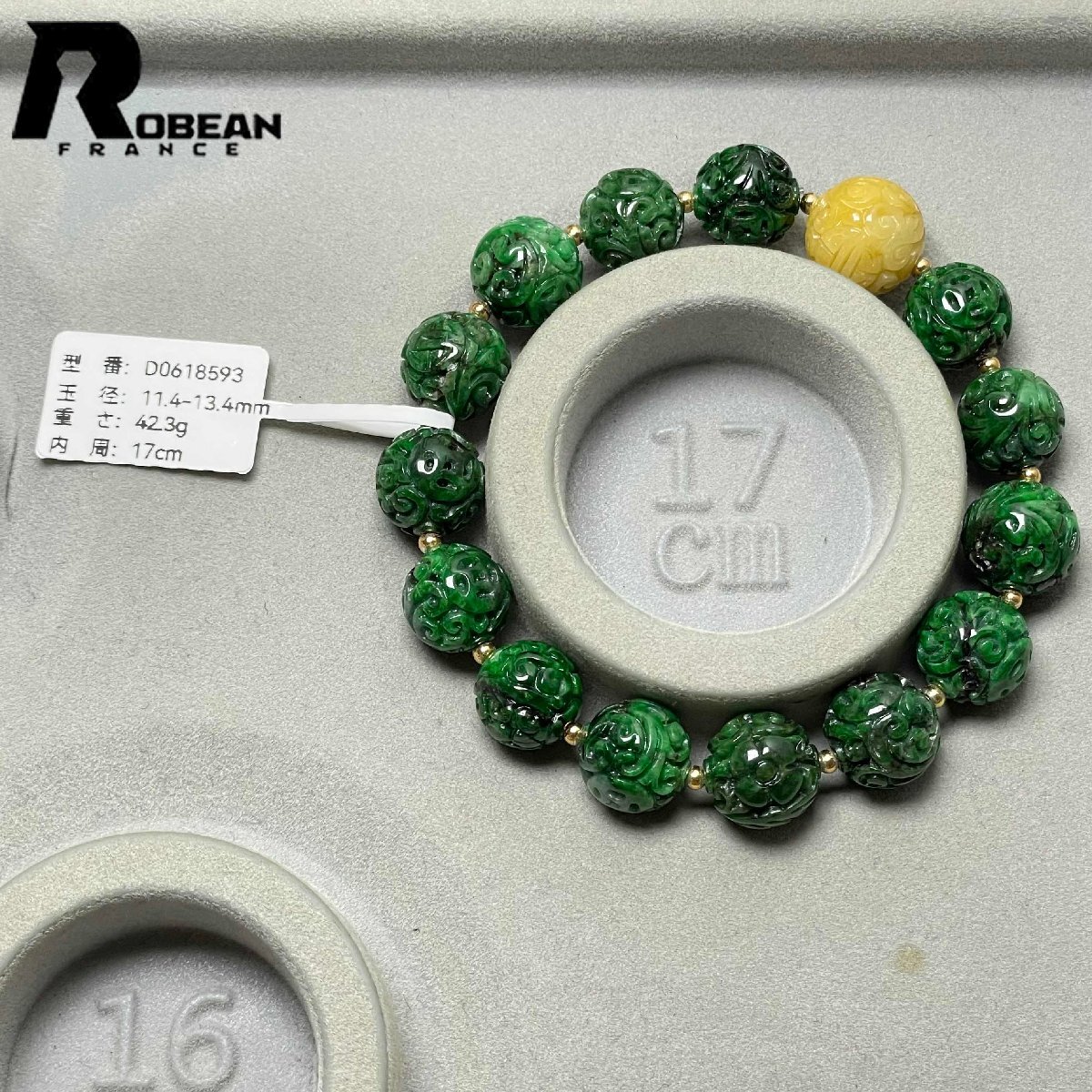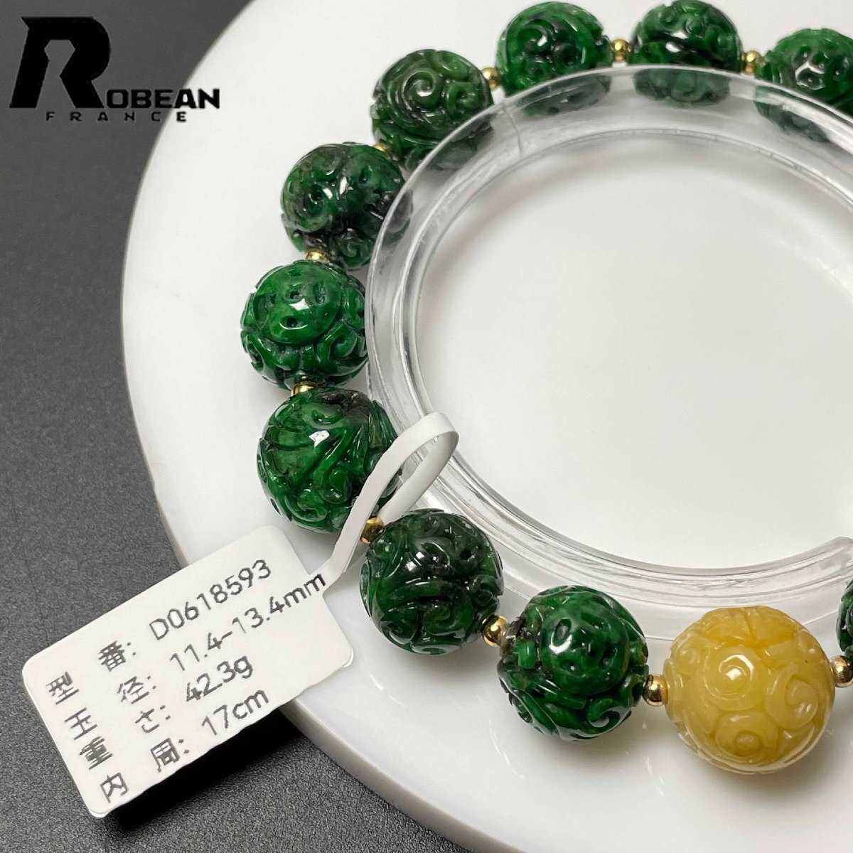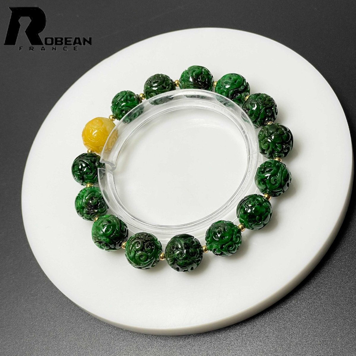 【一点限り】EU製定価37万円★ROBEAN・ヒスイ翡翠・回紋珠★アクセサリー ブレス パワーストーン 天然石 幸運 贈り物 11.4-13.4mm D0618593