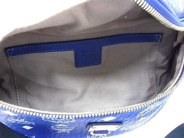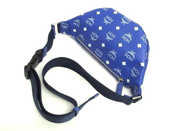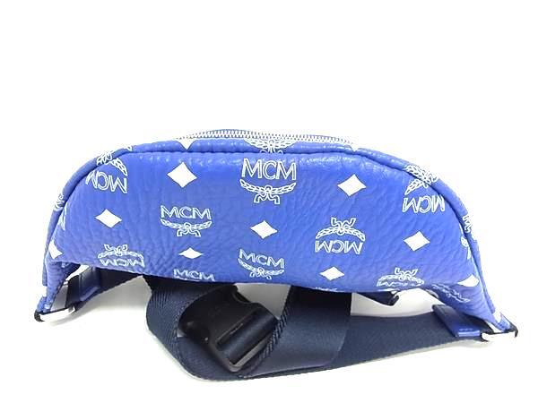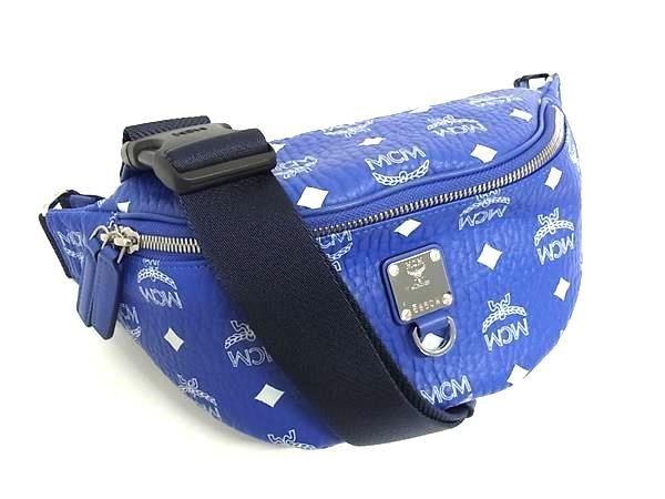 1円 ■美品■ MCM エムシーエム ヴィセトス柄 モノグラム レザー ウエストポーチ ボディバッグ ショルダーバッグ ブルー系 FN8678