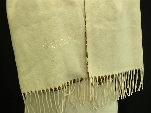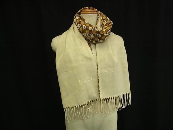 1円 ■極美品■ GUCCI グッチ ホースビット カシミヤ×シルク フリンジ マフラー ストール ショール レディース ブラウン系 FL7571