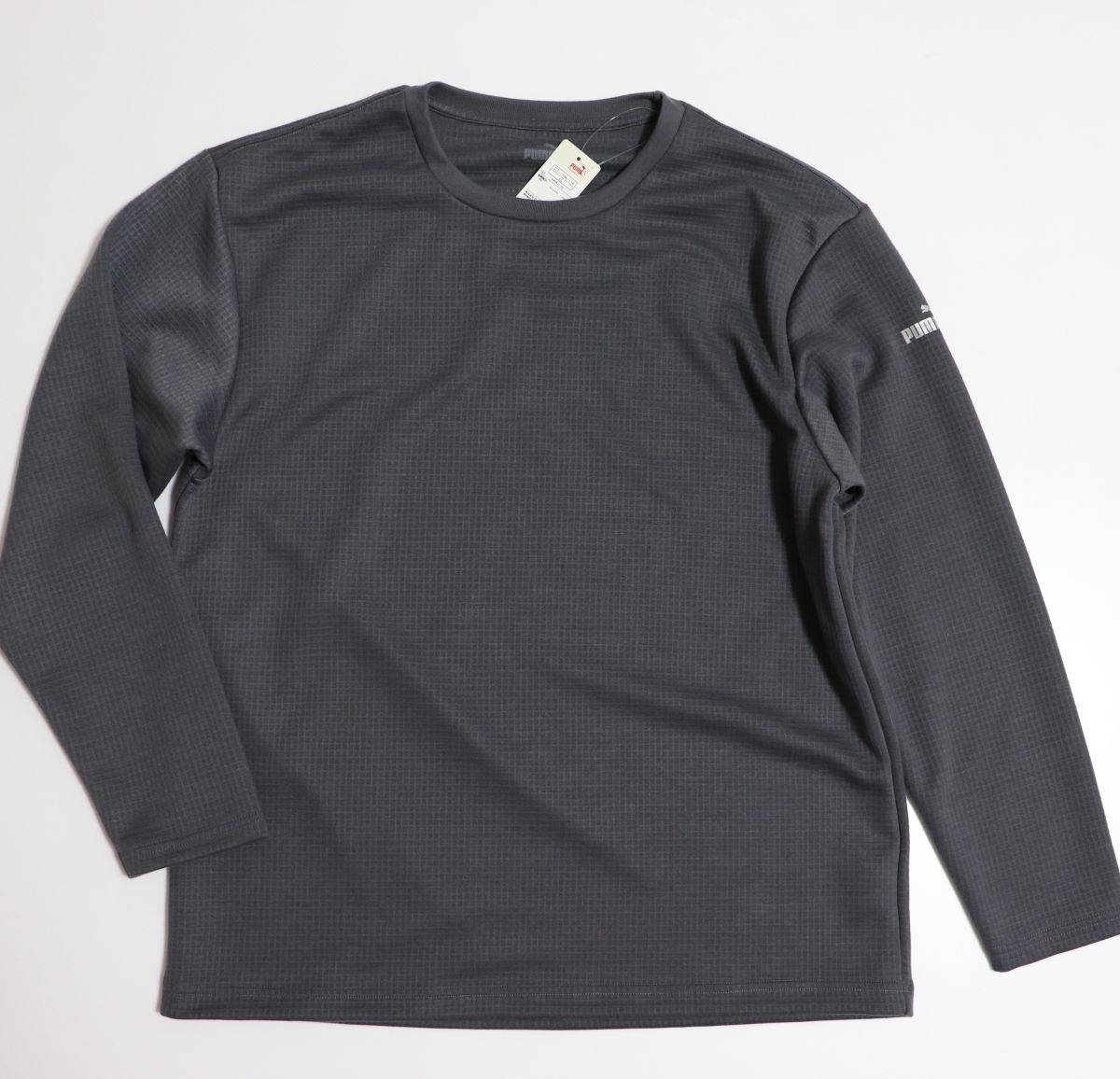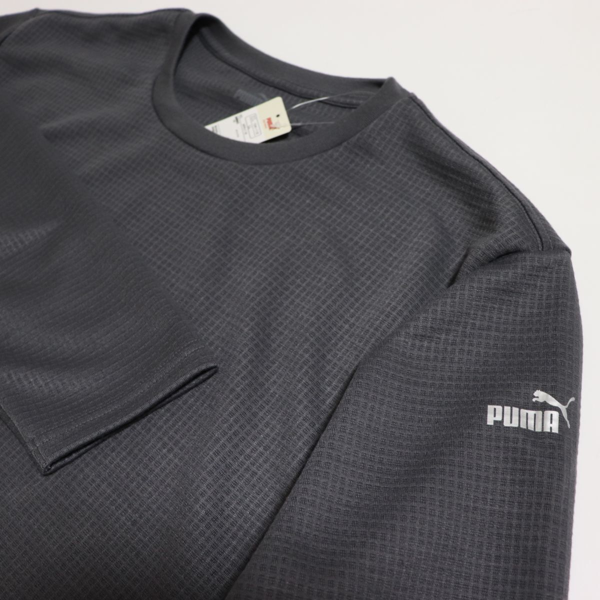 ★プーマ PUMA 新品 メンズ 快適 シンプル ロゴ入り トレーニング 長袖 ワッフル シャツ ロンT 灰 Lサイズ[4FPU116-GRY-L]三 弐★QWER★