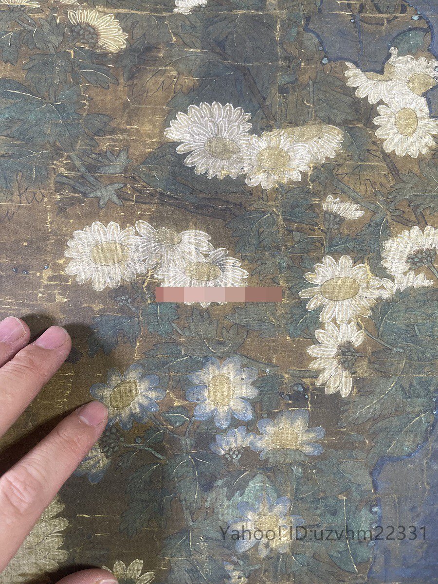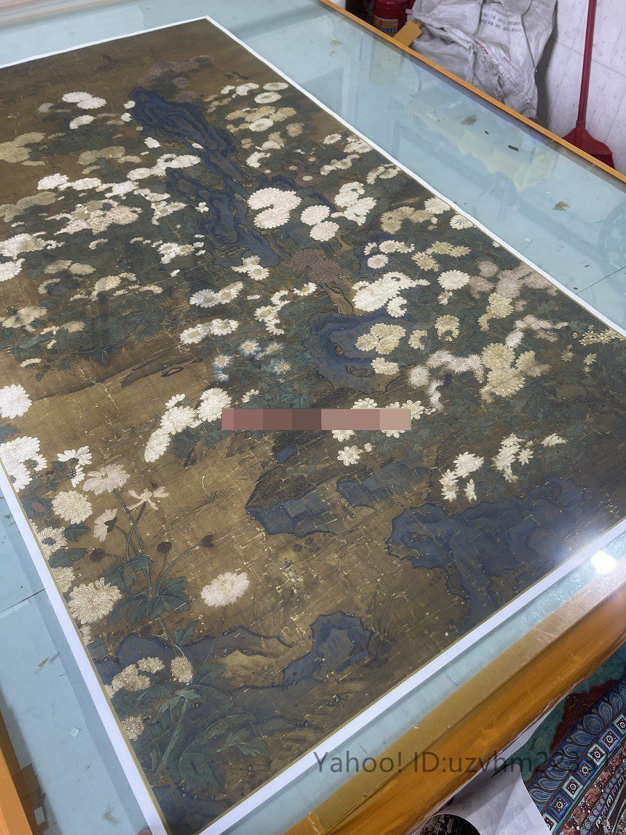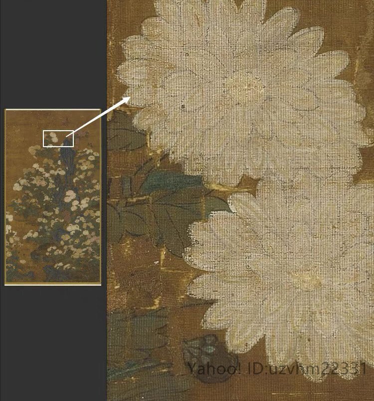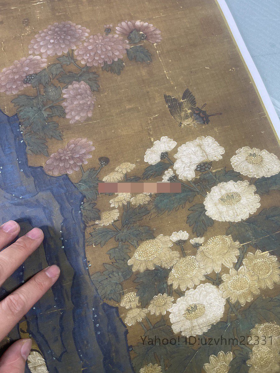 送料無料! 元王朝 叢菊図 古典花卉工筆絵画装 飾 国画 絹布 絹本 縦幅 中国美術 掛け物 未表装