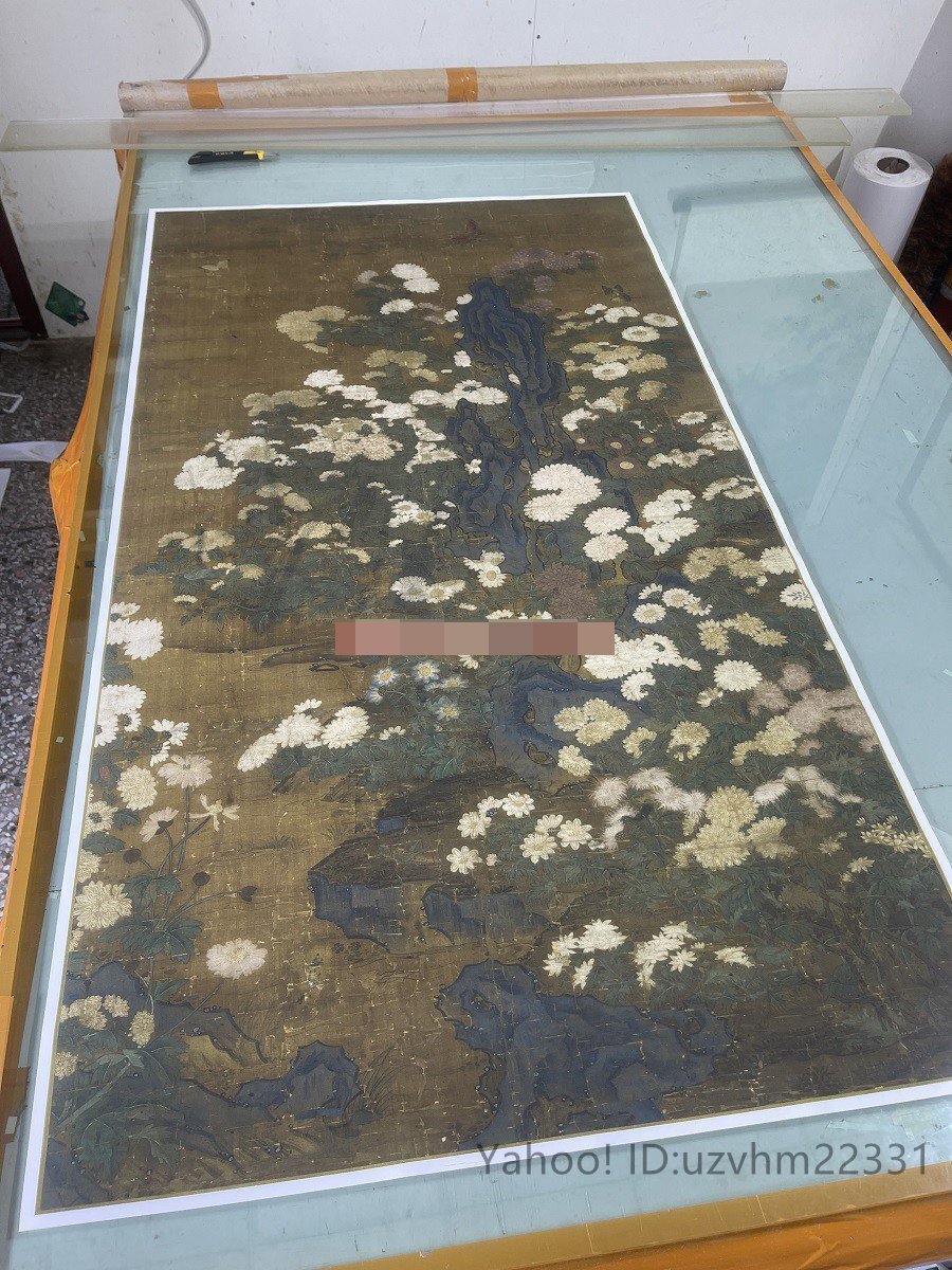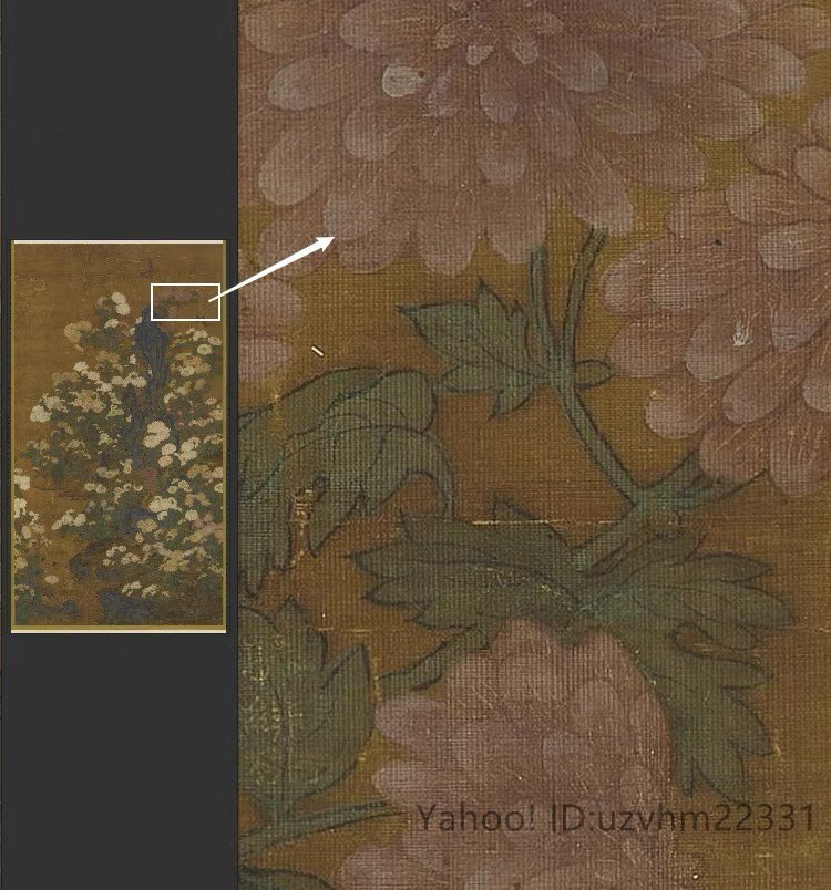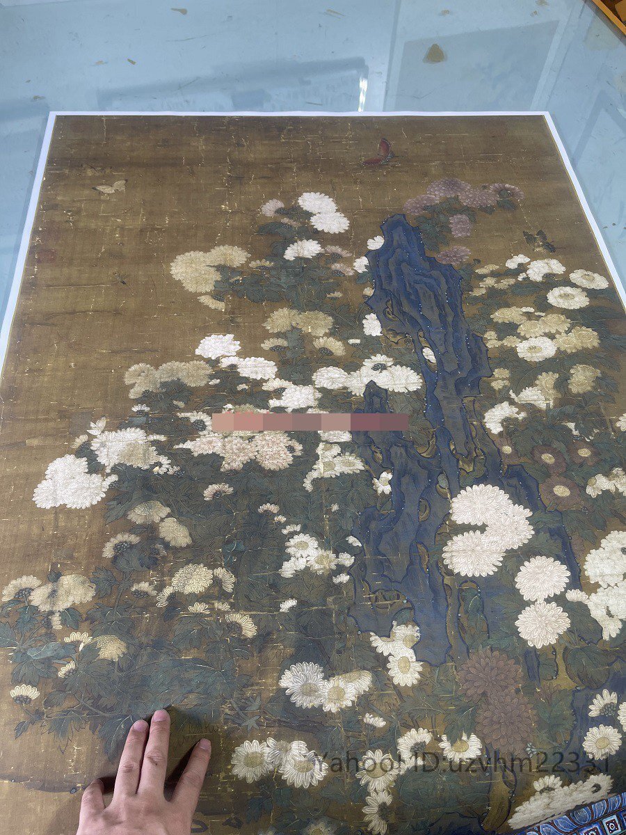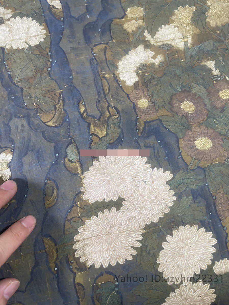 送料無料! 元王朝 叢菊図 古典花卉工筆絵画装 飾 国画 絹布 絹本 縦幅 中国美術 掛け物 未表装