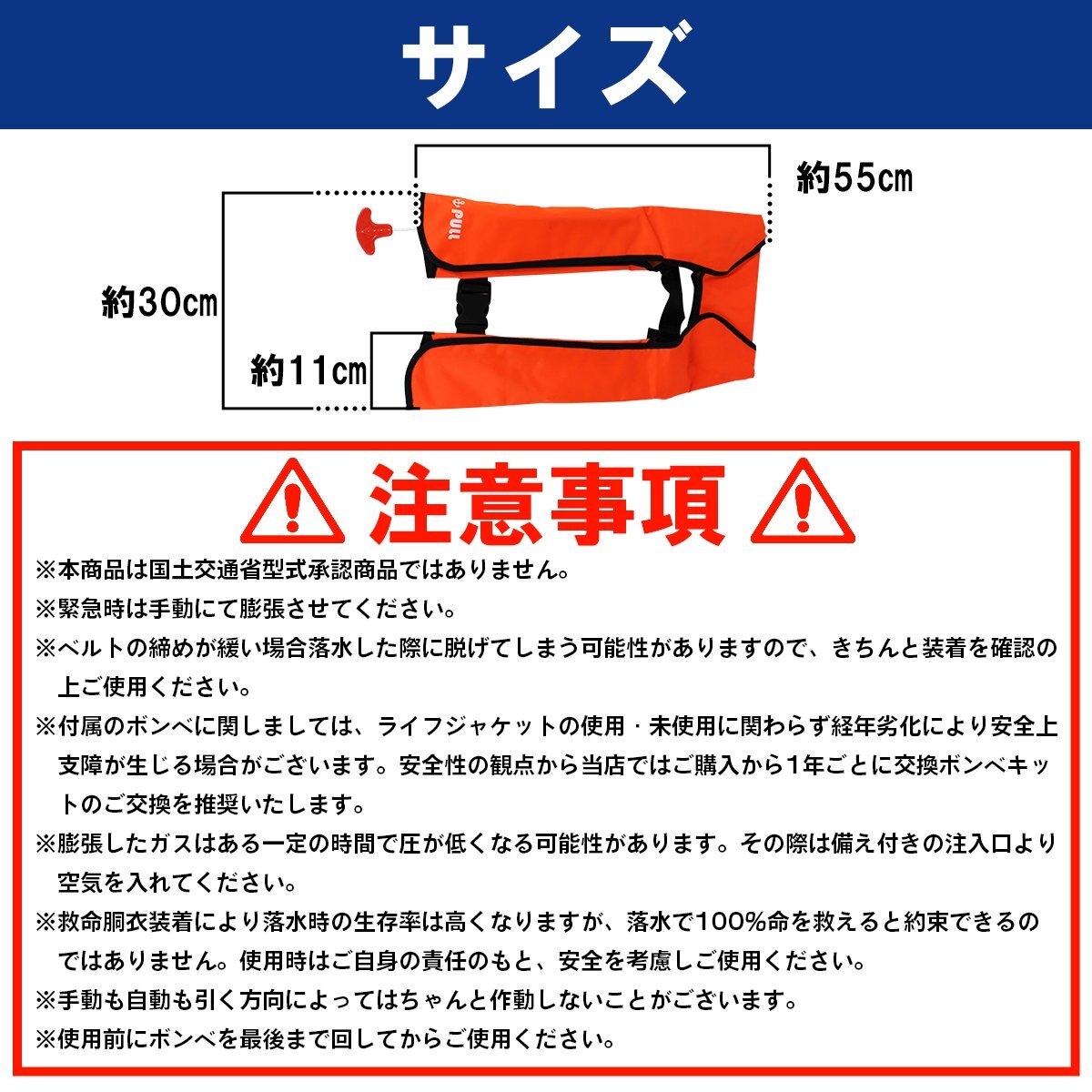 大人気!オリジナルデザイン! ライフジャケット 自動膨張式 肩掛け ベストタイプ オレンジ/橙色 男女兼用! フリーサイズ 釣り 船 ボート