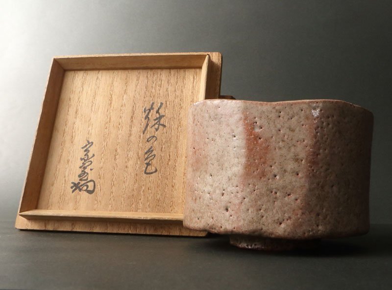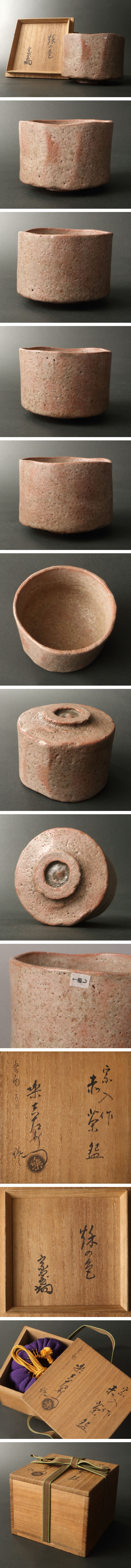 委託HK◇樂宗入 赤楽茶碗 淡々斎書付、樂覚入極 「秋の色」※仕覆添え(茶道具 陶磁器 京焼 楽焼 赤茶碗 千家十職 裏千家 家元 濃茶 茶会)