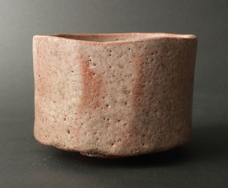 樂宗入 赤楽茶碗 淡々斎書付、樂覚入極 「秋の色」※仕覆添え