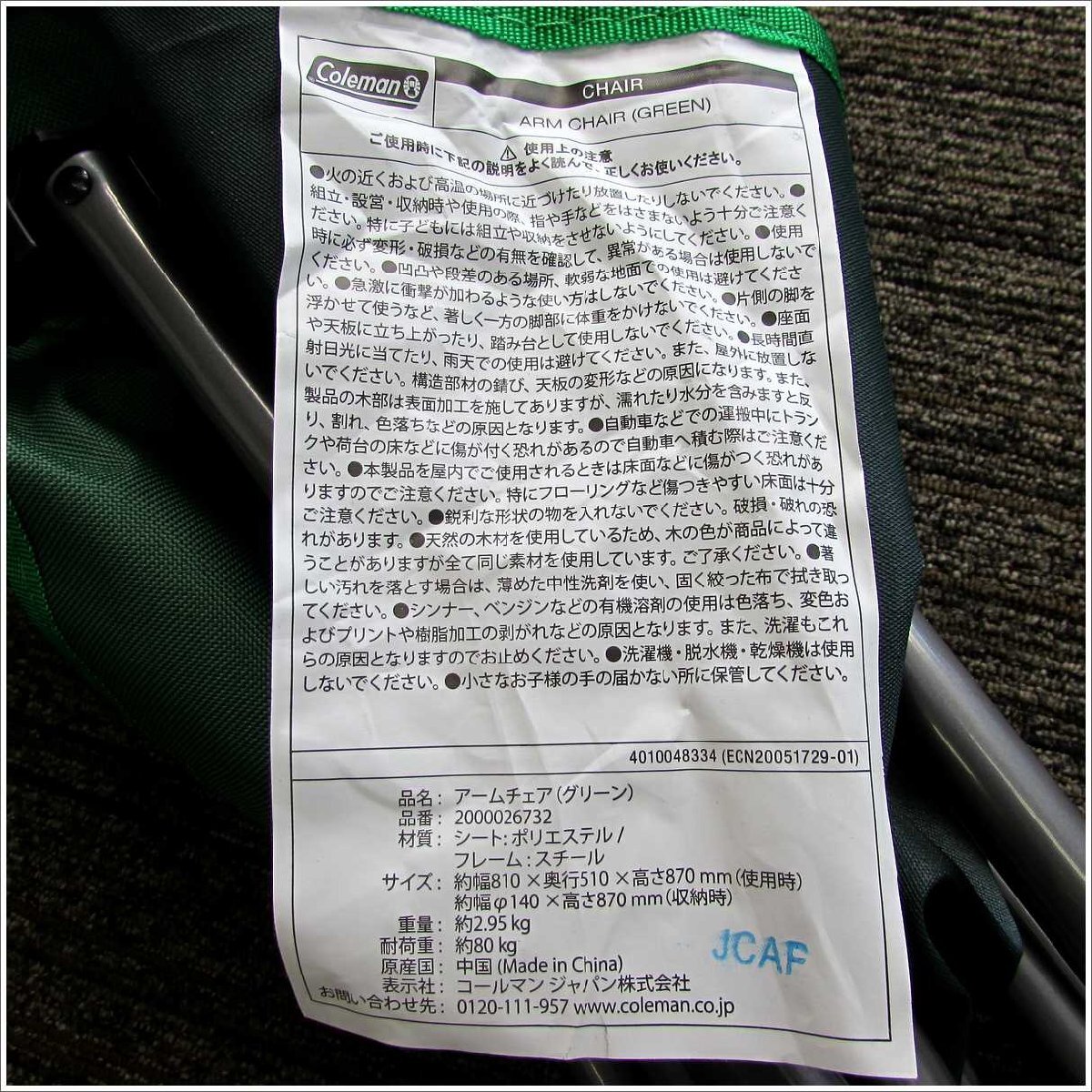 ■商品タイトル:Coleman コールマン アームチェア 椅子 グリーン アウトドア用品 品番2000026732
