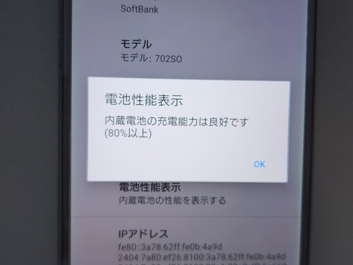 □【電池性能】: 内蔵電池の充電能力は良好です。(80%以上)