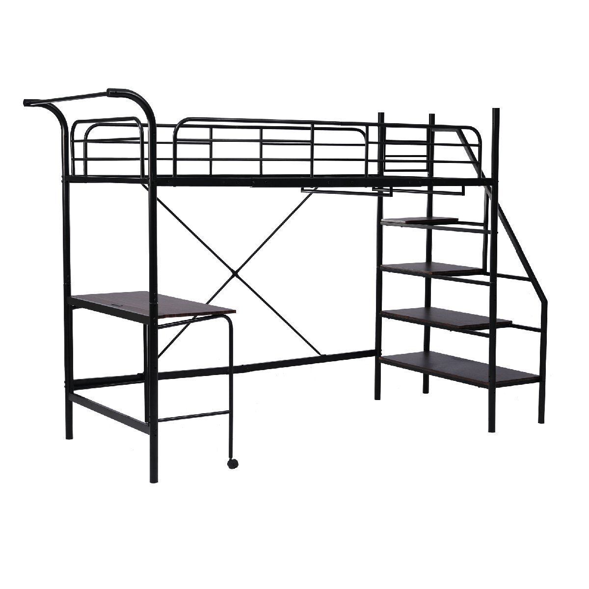 • 【ハンガーポール付き】ベッドの横にはハンガーが取り付けられている!ベッドの下、二つハンガーポールを配置、たくさんの服も大丈夫!注:ハンガーは付いていません。