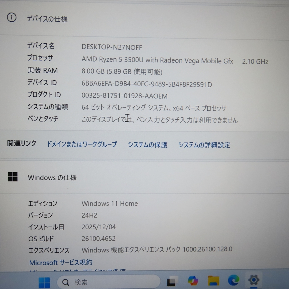 | CPU | Ryzen5 3500U 2.1GHz | |