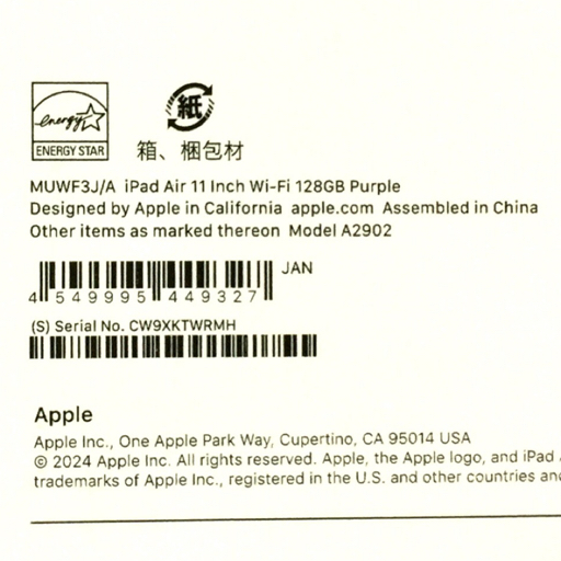 | 1円 Apple iPad Air M2 Wi-Fiモデル MUWF3J/A A2902 11インチ 128GB パープル アイパッド タブレット ジャンク |