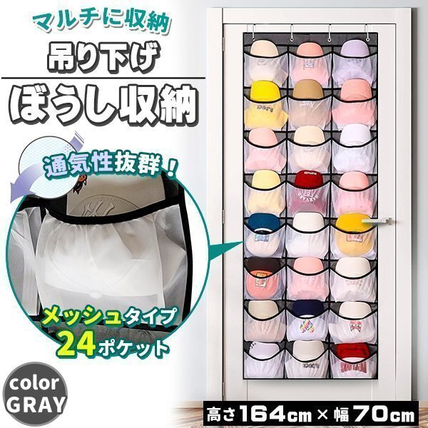 帽子掛け 吊り下げ収納 ドア掛け クローゼット 収納 24格 グレー 灰色 ウォールボックス 区分け収納 靴 シューズ キャップ 帽子収納ケース