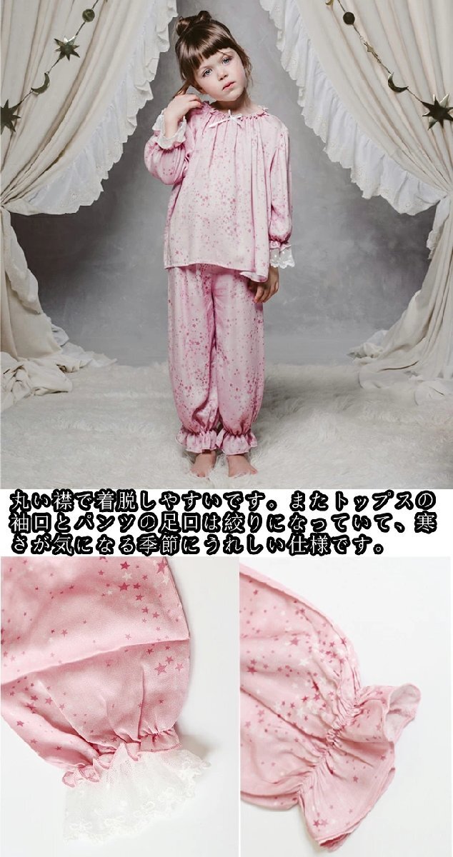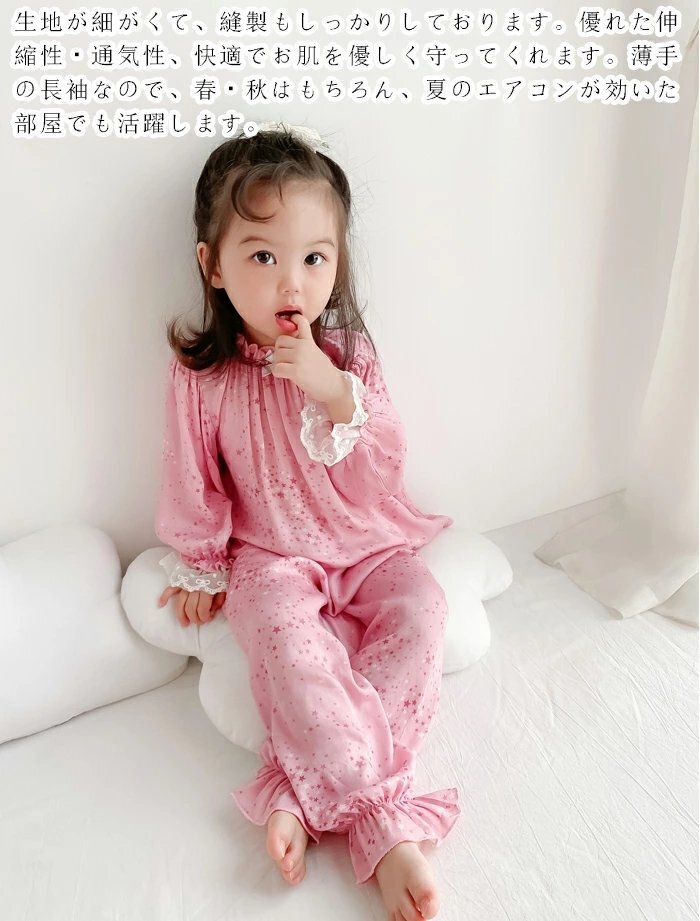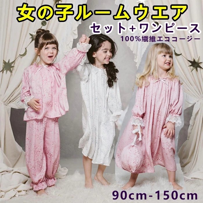 子供パジャマ キッズルームウエア ワンピースパジャマ 上下セットパジャマ 長袖 薄手 女の子 子ども ジュニア ☆4色/90~150選択/1点