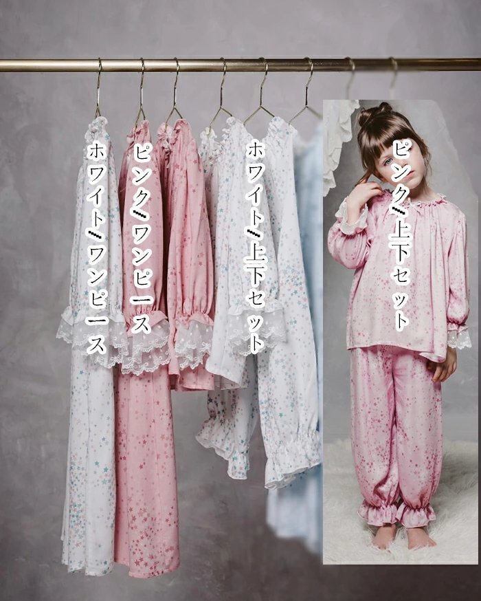 カラー:ピンク/ワンピース、ピンク/上下セット、ホワイト/ワンピース、ホワイト/上下セット