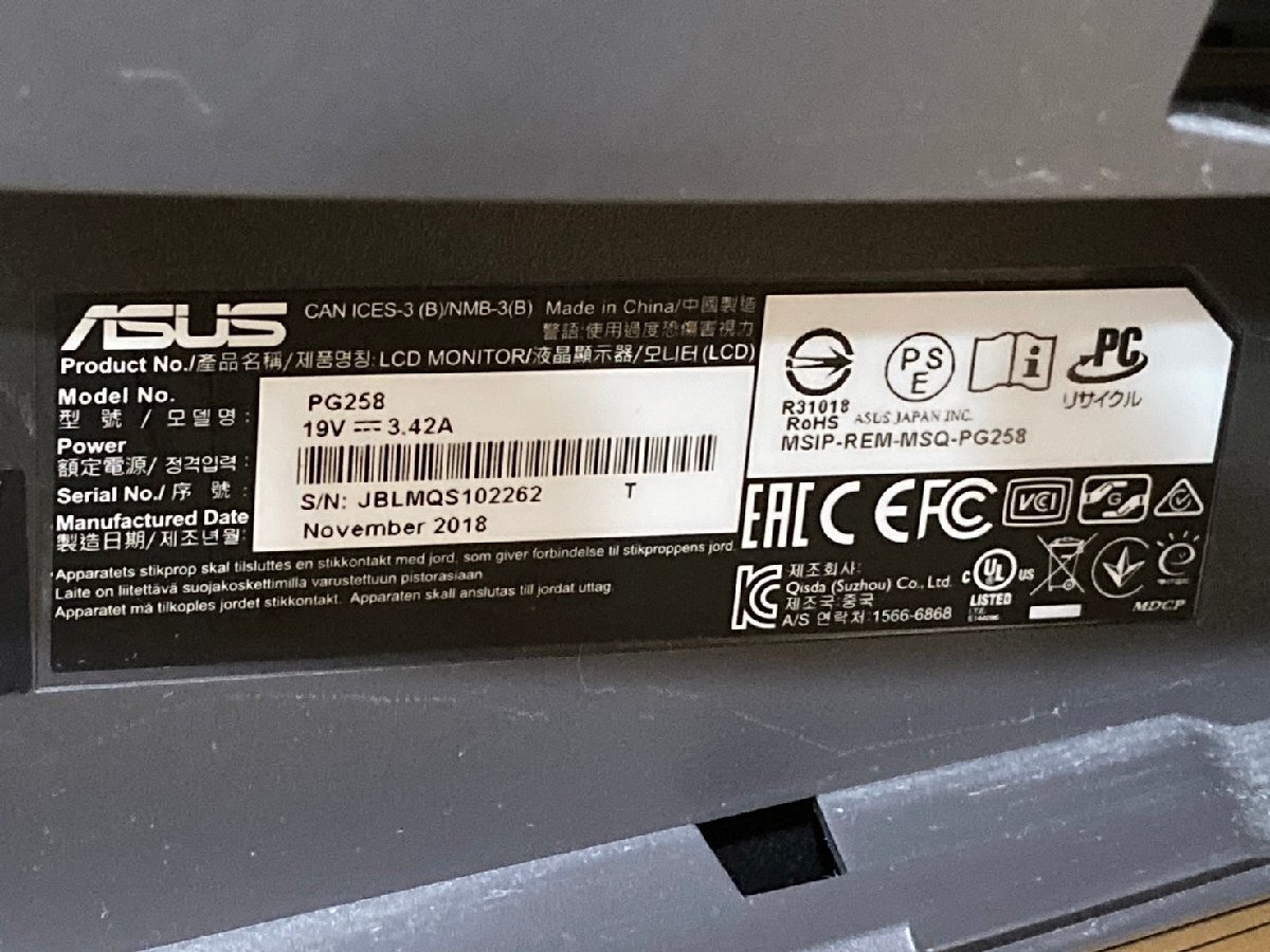 ◆ASUS エイスース ゲーミングモニター 2415型 PG258Q 付属ケーブルあり 中古◆13589