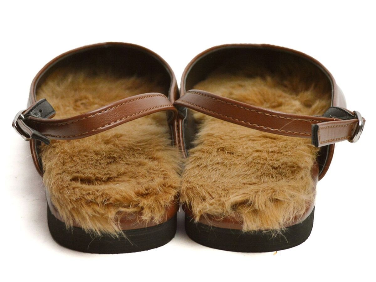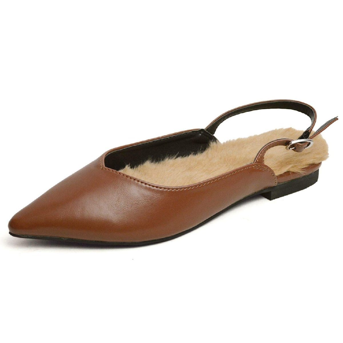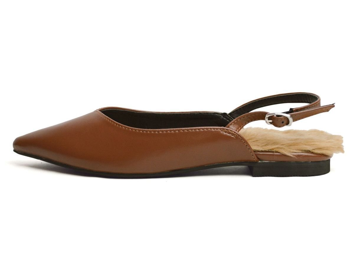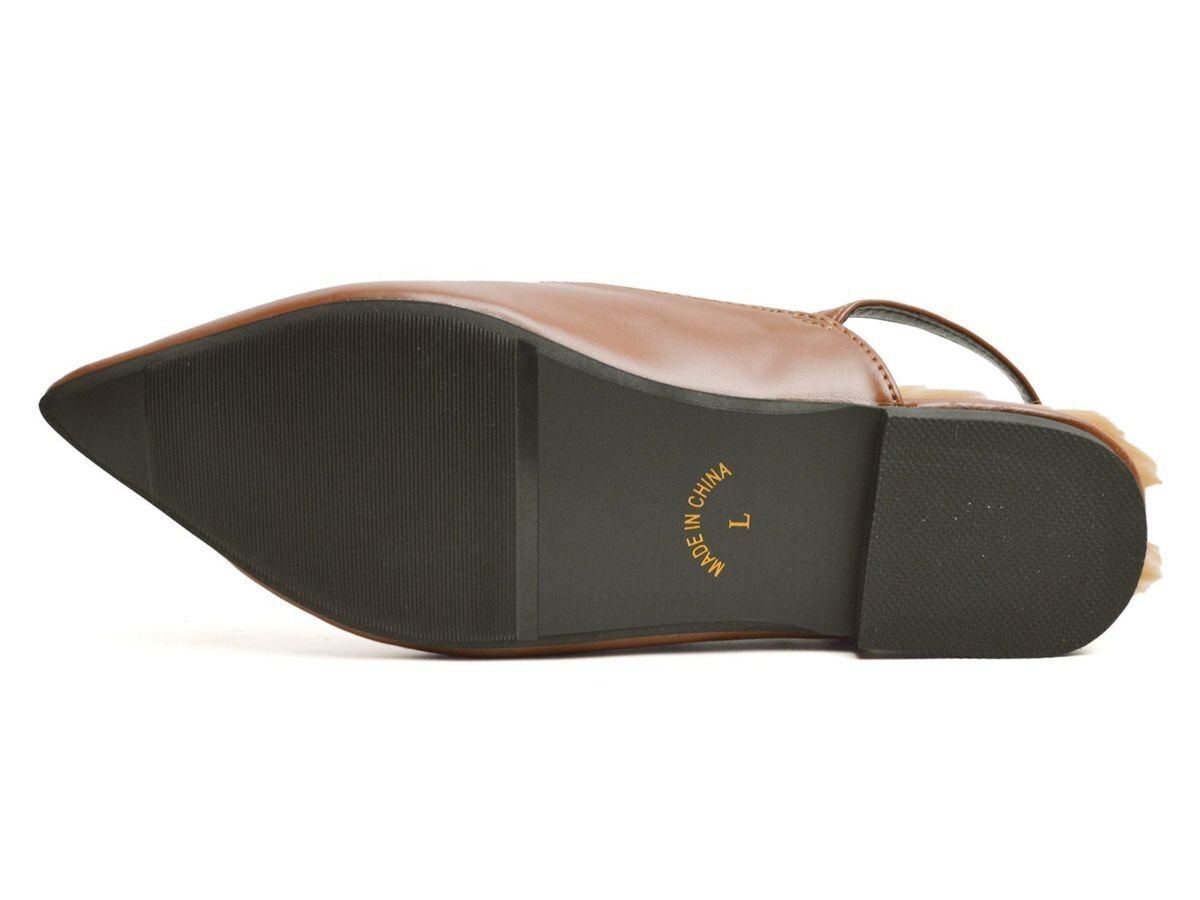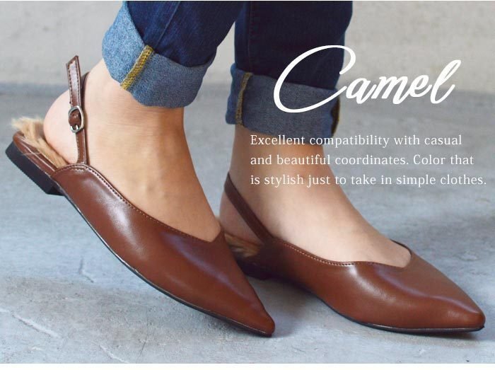レディース フラット パンプス ふわふわ ファー ストラップ付 ポインテッドトゥ サンダル ぺたんこ カジュアル 大人 靴 9380