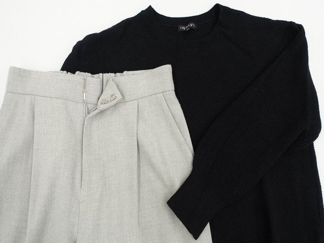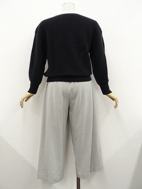 洗える 長袖ニットセーター+ワンタックワイドパンツ コーディネート上下2点セット M相当 ブラック/ライトグレー オフィス系 30代~40代