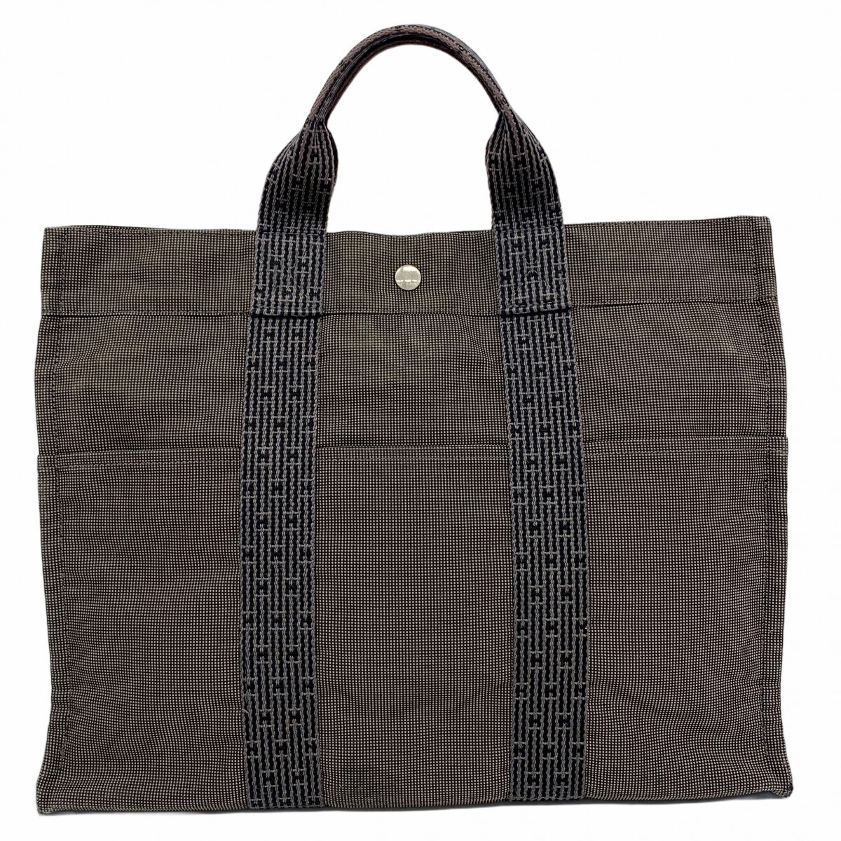 【5pa0330】エルメス トートバッグ エールラインMM キャンバス グレー シルバー金具【中古】レディース