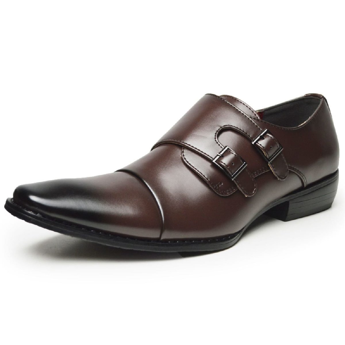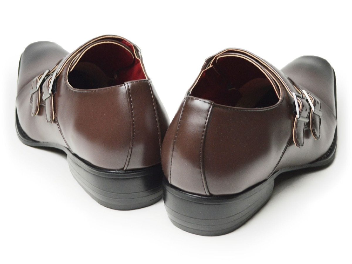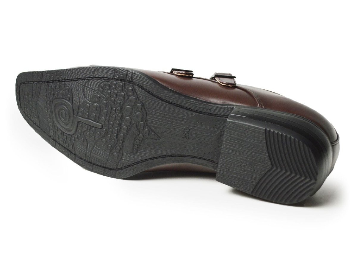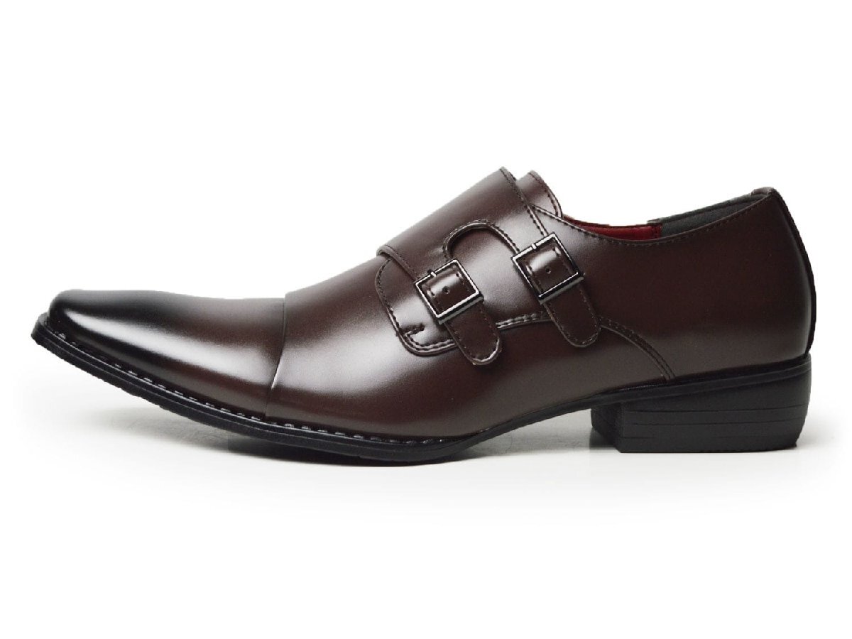 新品■26.5cm ビジネスシューズ メンズ モンクストラップ ストレートチップ ダブルベルト 革靴 イタリアンデザイン オフィス コンフォート