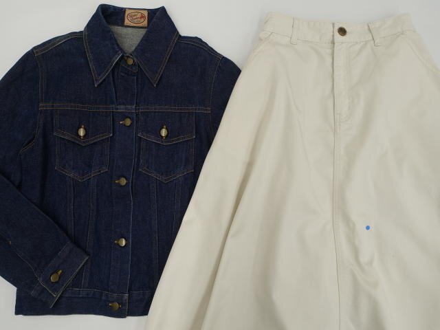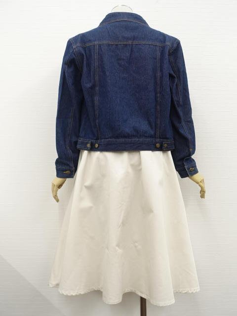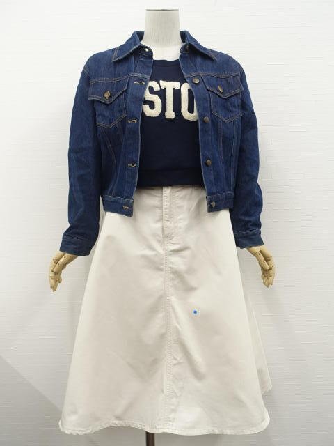 洗える 長袖ジャケット+長袖カットソー+ひざ丈フレアスカート コーディネート上下3点セット M相当 ブルー/ネイビー地 ホワイト 英字/オフホワイト カジュアル・シンプル系 20代