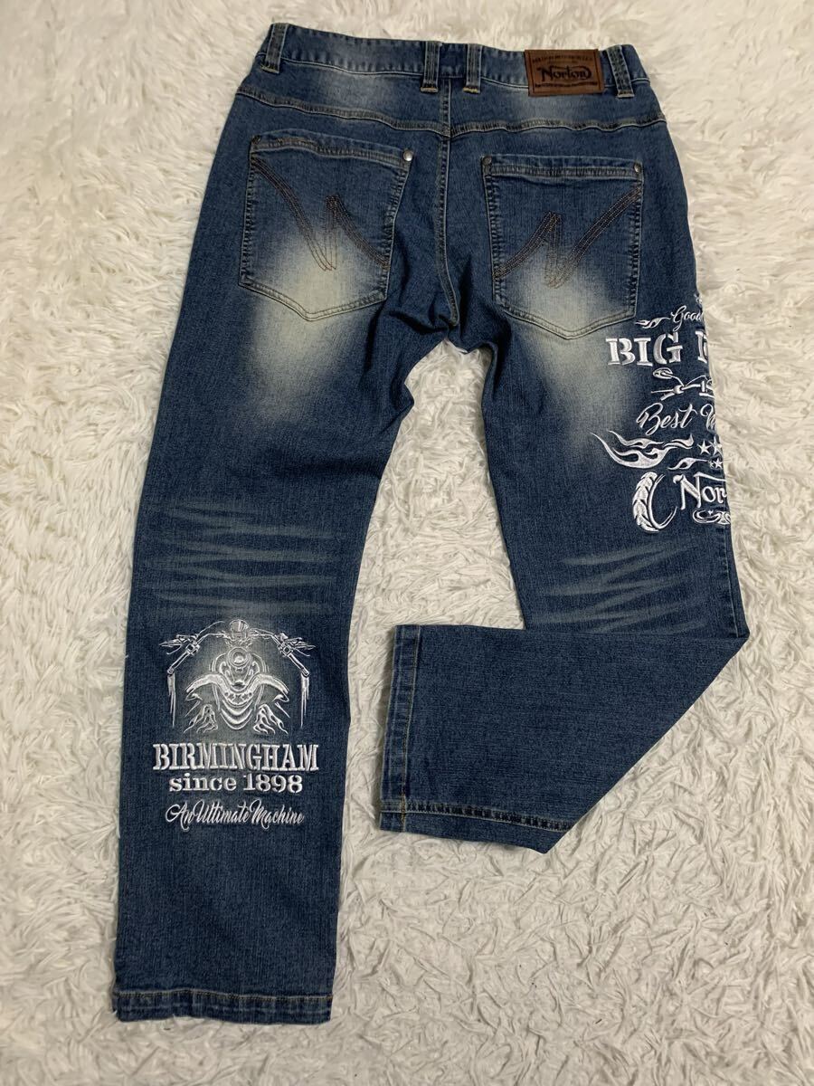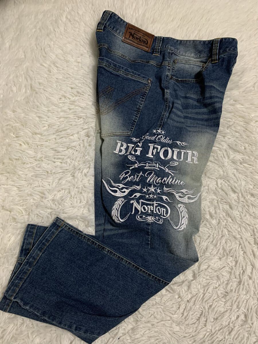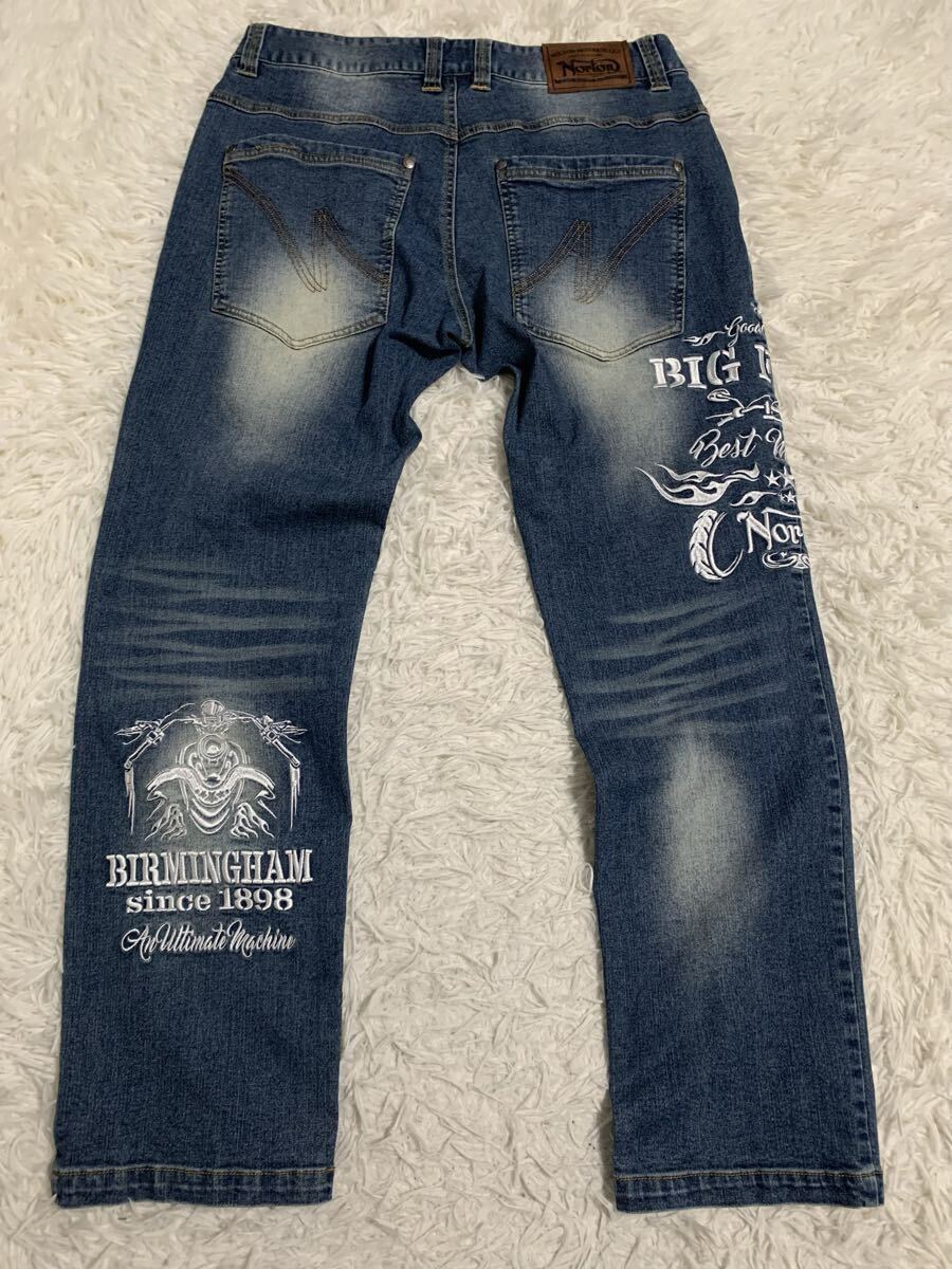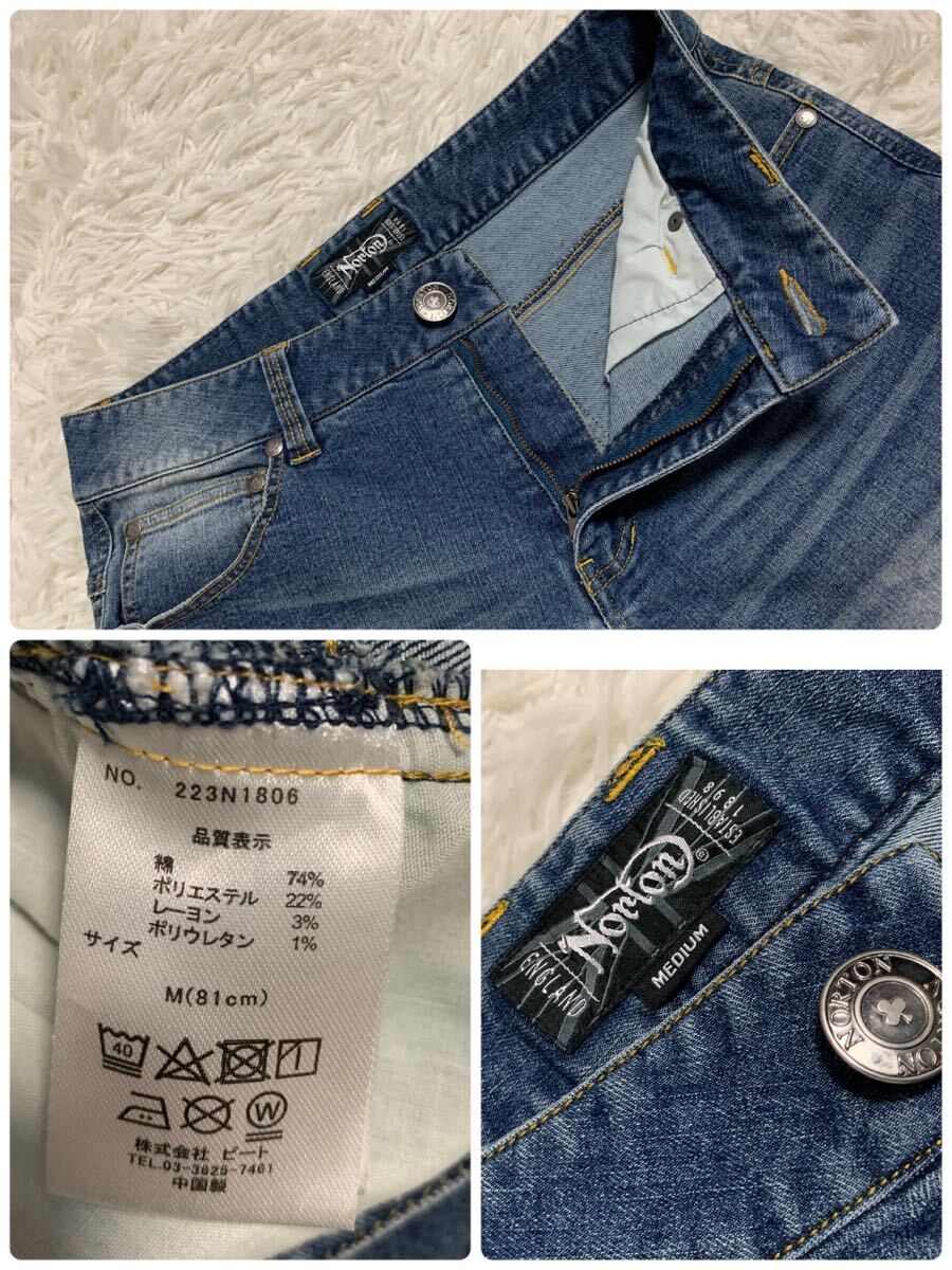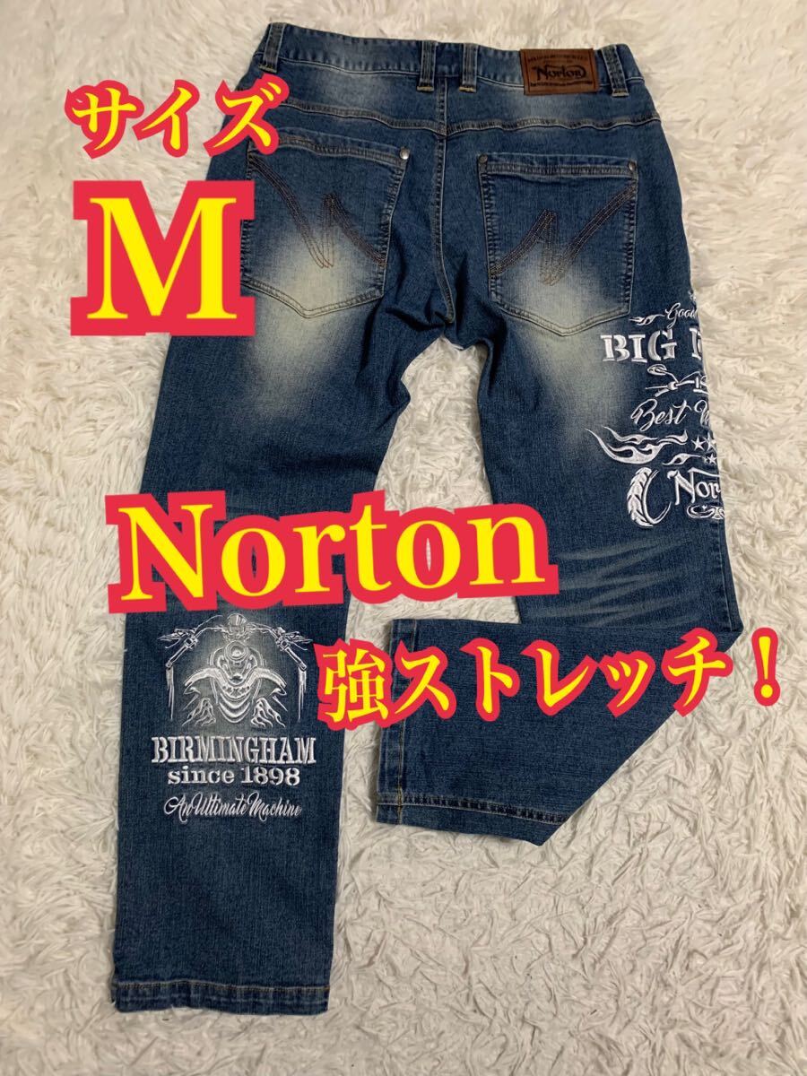 Norton ノートン デニム ジーンズ 強ストレッチ バイカー 刺繍ロゴ インディゴ Mサイズ