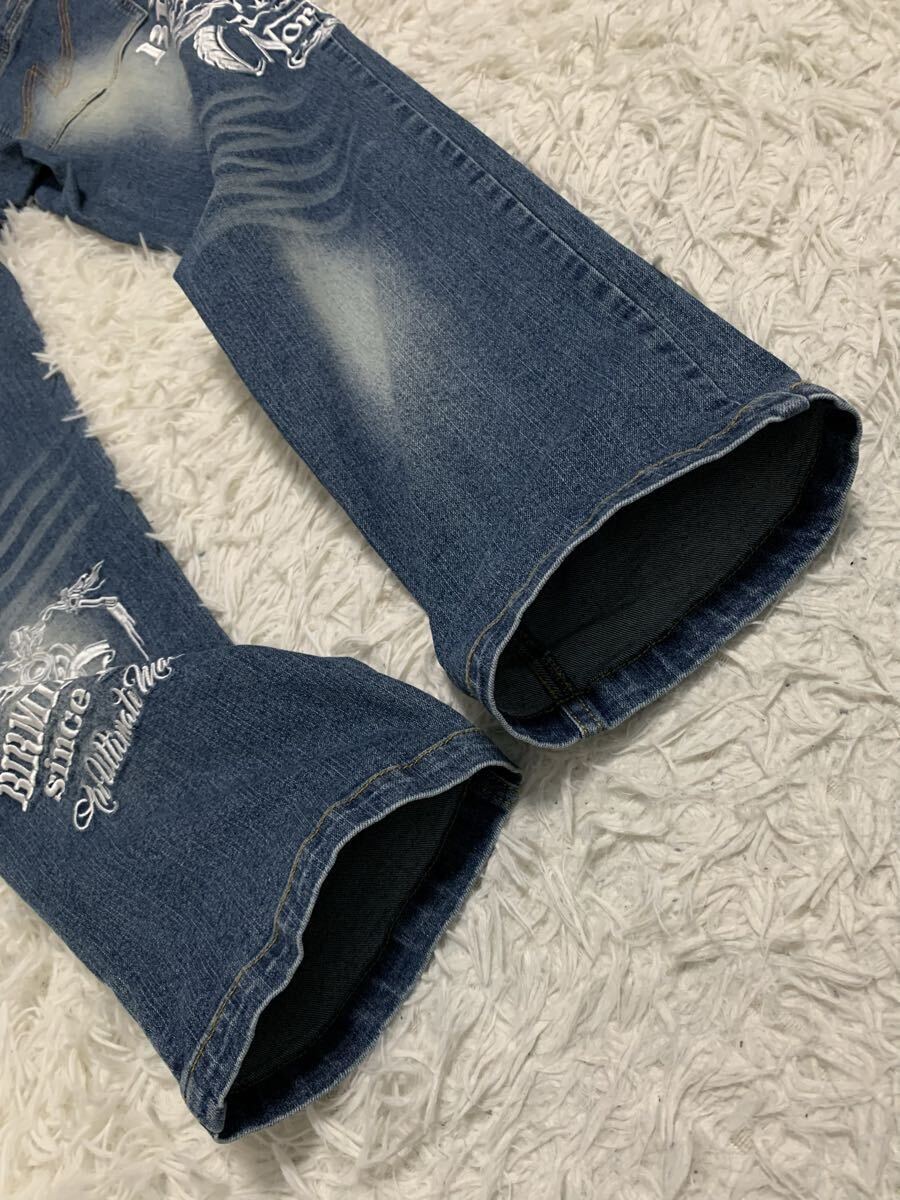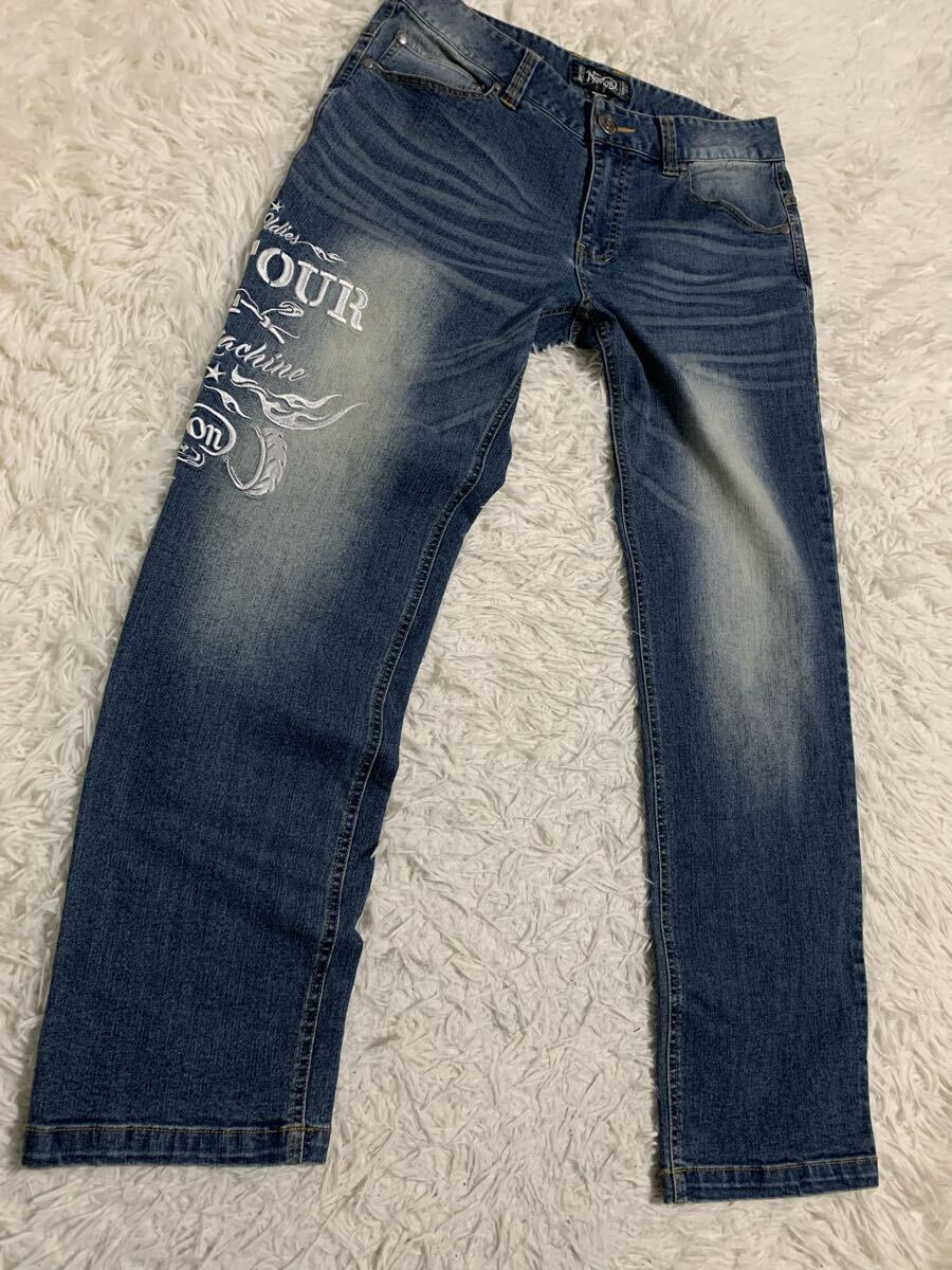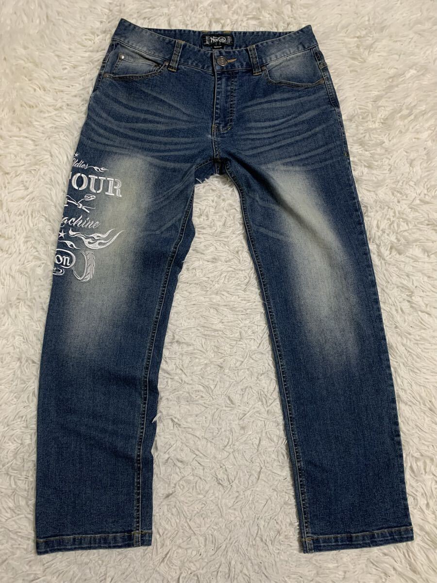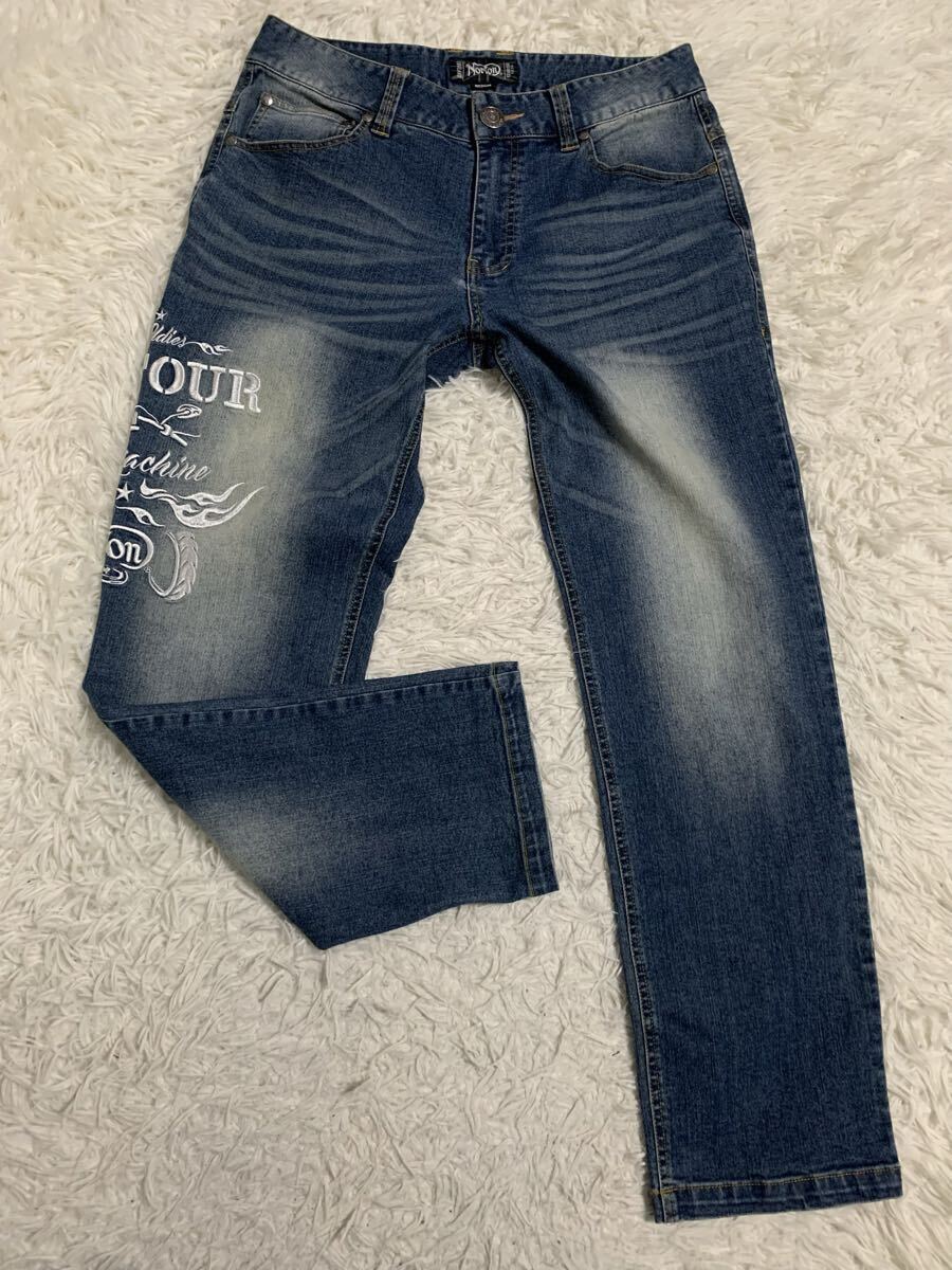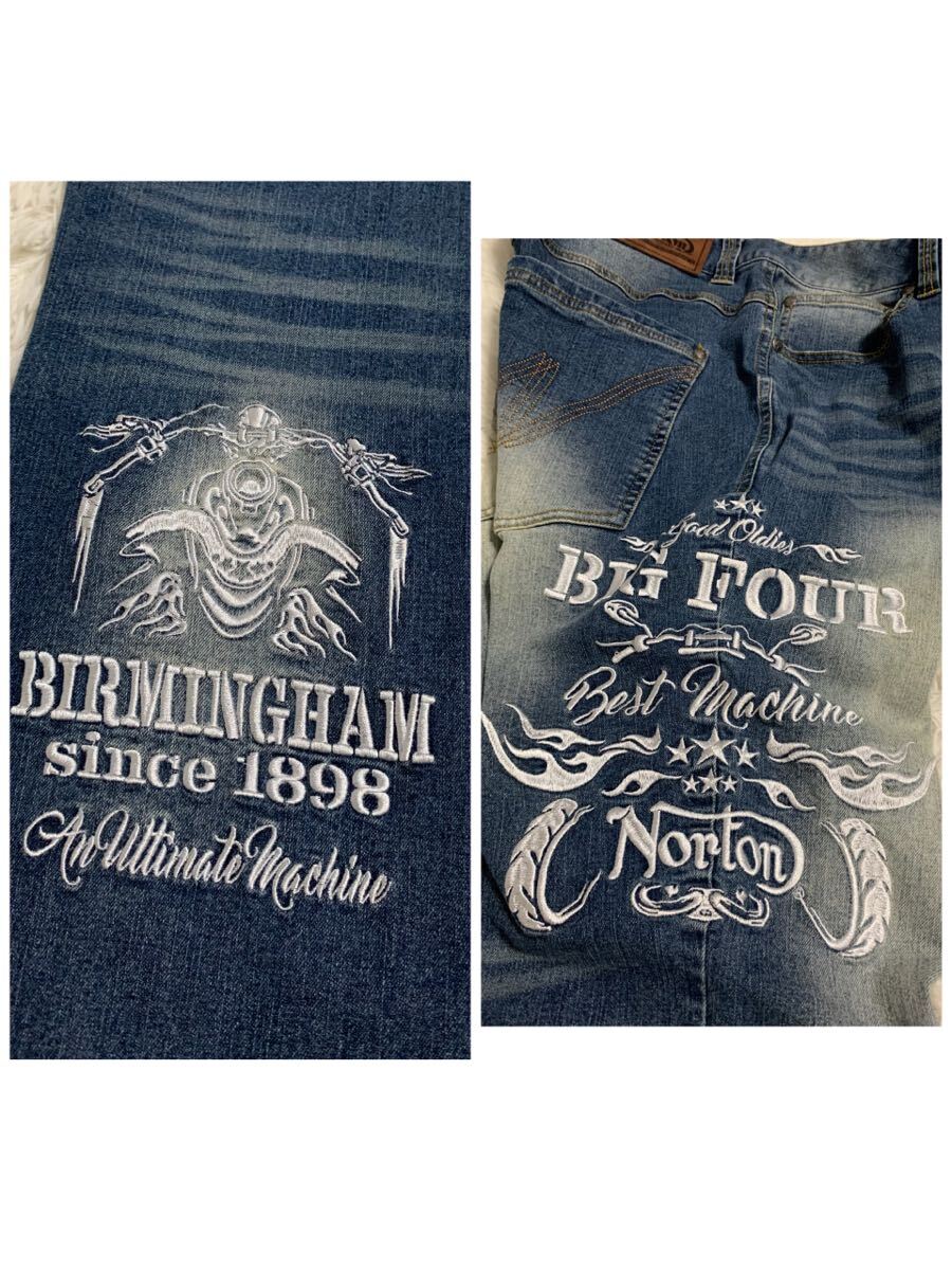 Norton ノートン デニム ジーンズ 強ストレッチ バイカー 刺繍ロゴ インディゴ Mサイズ