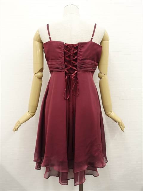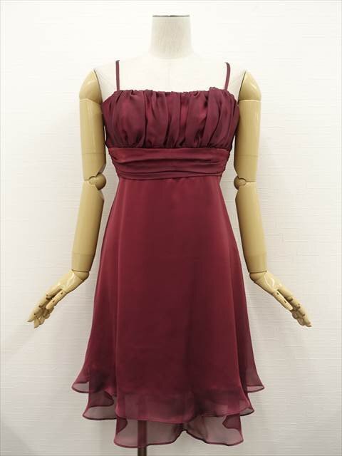 ひざ丈 シフォンキャミソールワンピース ドレス セミフォーマル 15AR ボルドー