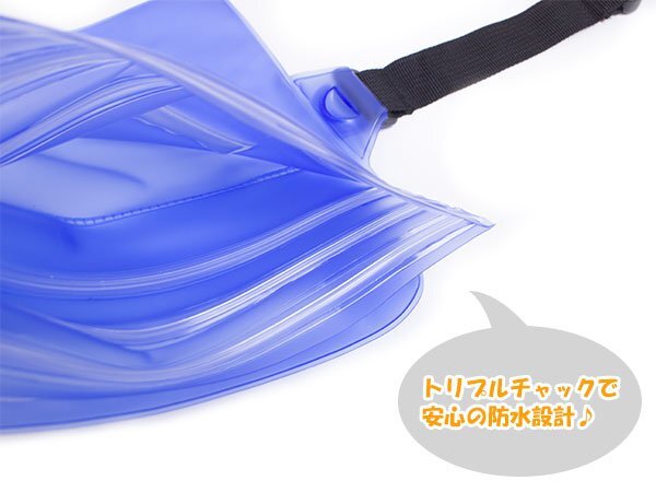 携帯 貴重品 ケース バック 水中 プール 海 海水浴 砂 スキー スノボ スマホ iPhone 13/14/15 pro 6.1インチ 2重チャック 青