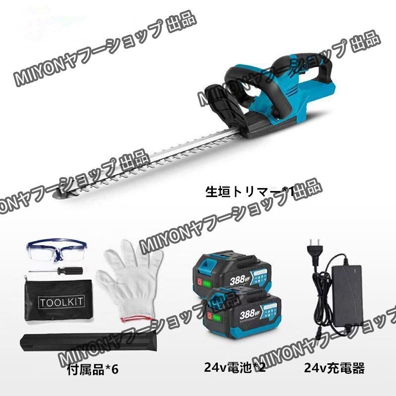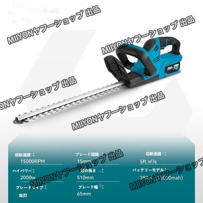 大人気充電式ヘッジトリマー チェーンソー 刈込幅490mm 両刃駆動 芝刈り機 生垣バリカン バッテリー2枚 庭木バリカン 剪定機械lhw038.1