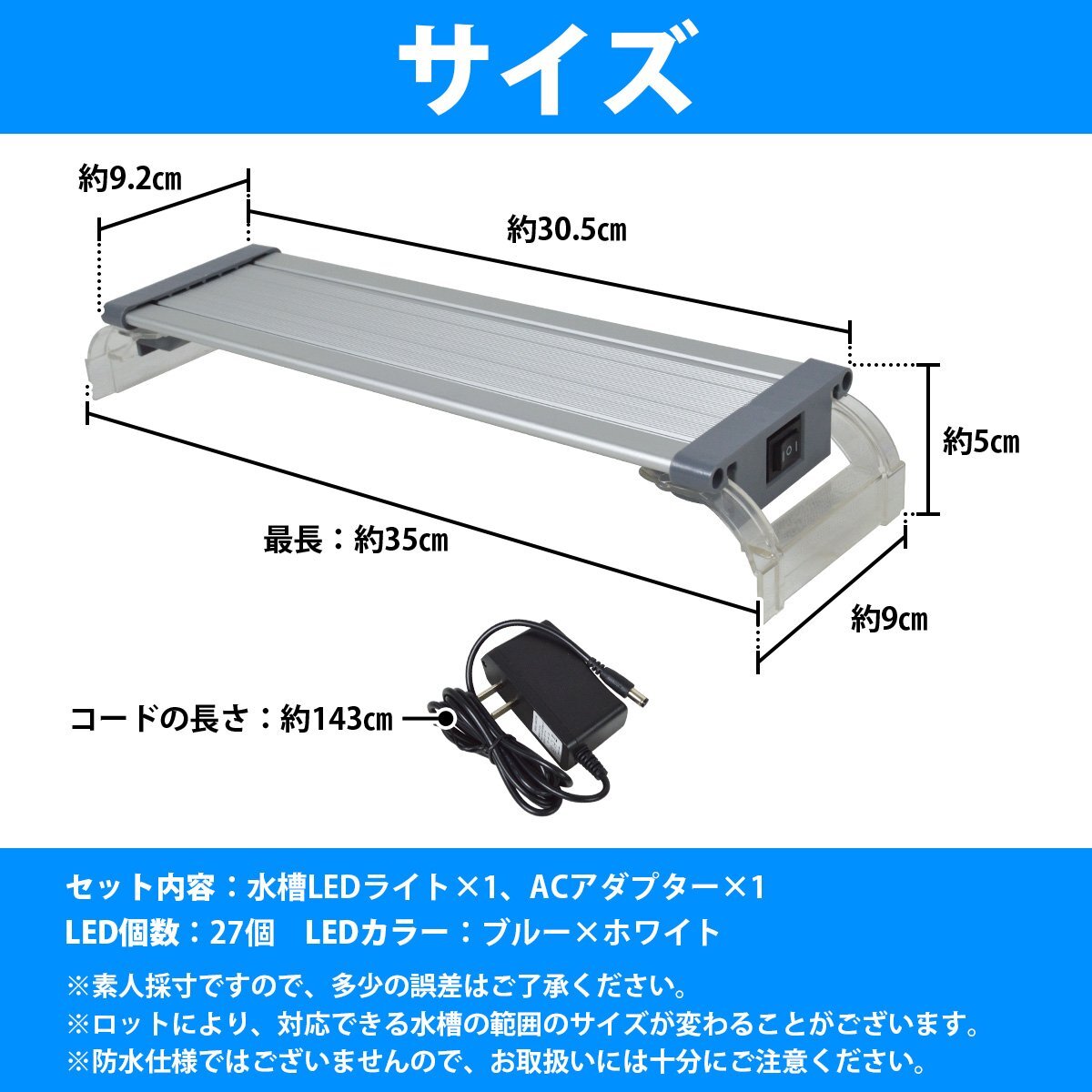 【新品即納】30cm-35cm 水槽用 照明 LED ライト ブルー×ホワイト 青/白 シルバー枠 アクアリウム ライト LED 照明 水槽 サンゴ 熱帯魚