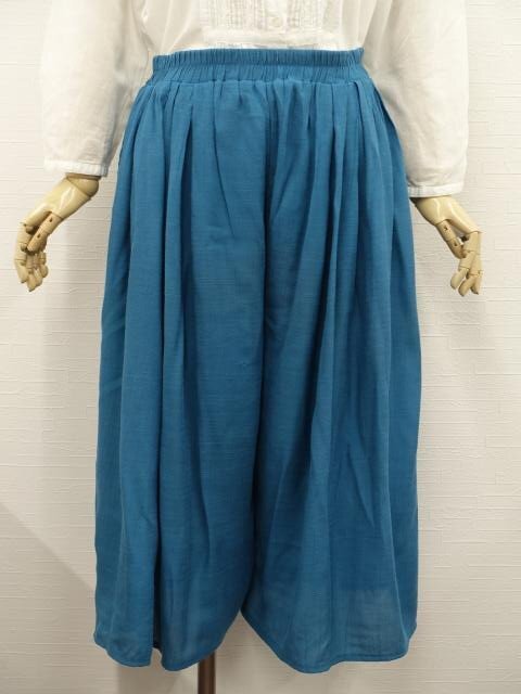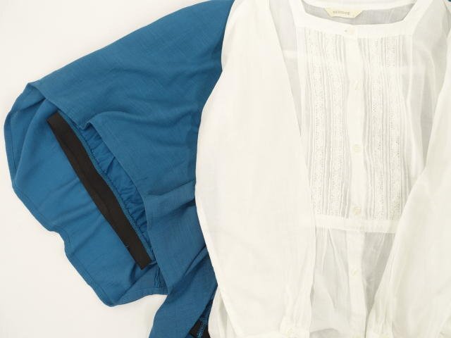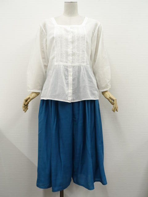 長袖ブラウス+スカーチョ コーディネート上下2点セット L相当 ホワイト/ブルー系 カジュアル系 20代・30代