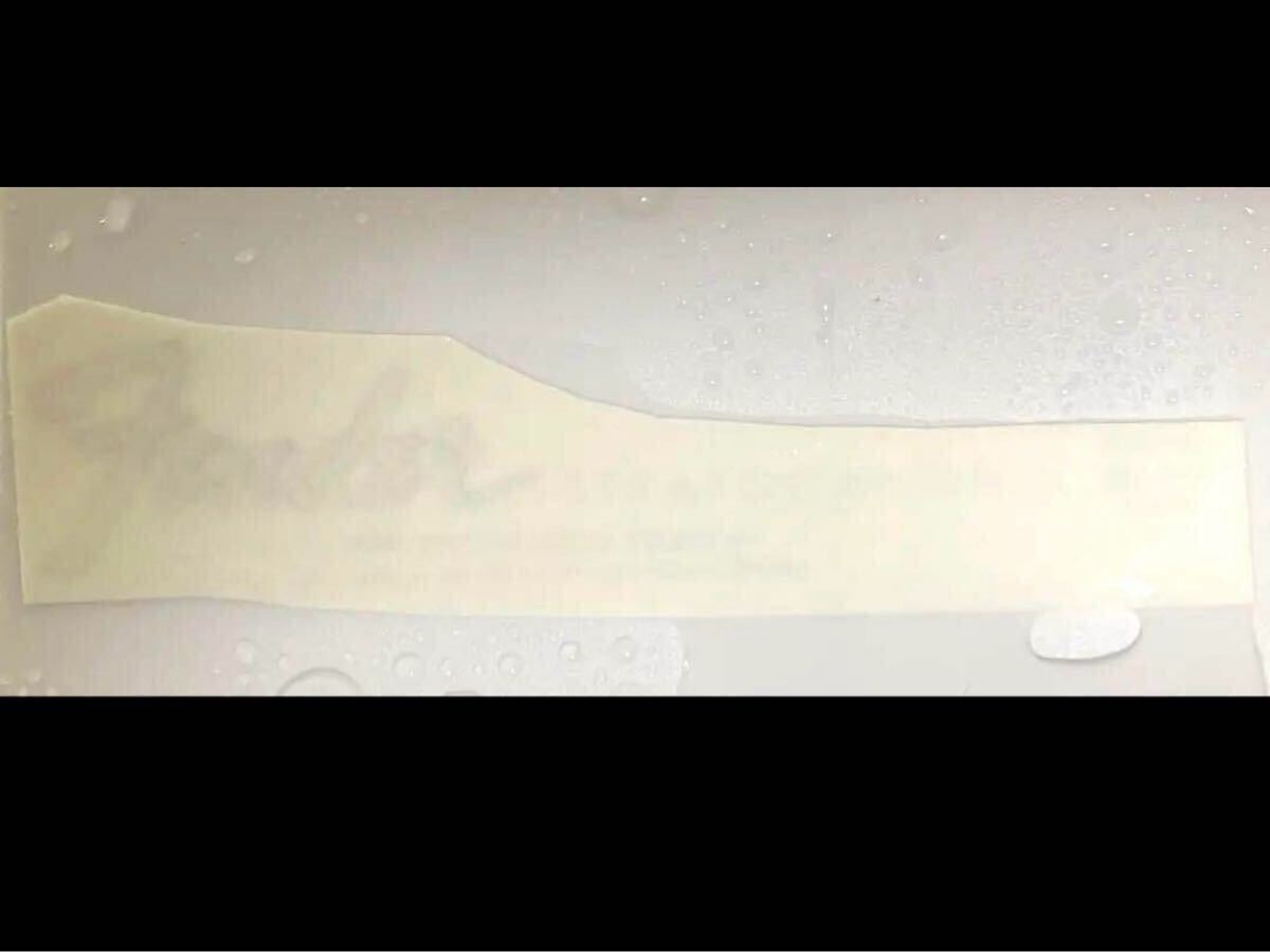 ②切り取ったシートを水に約20秒浸す。プリント面ではない台紙側から水につけます。(湾曲した場合は端まで水がつくようにまんべんなく浸してください。)