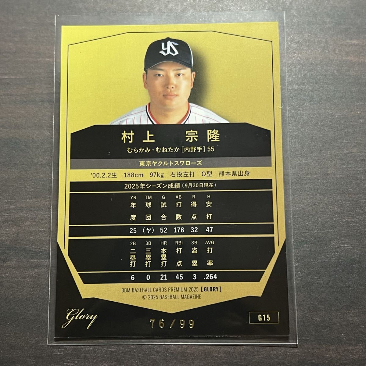 村上宗隆 金箔 99枚限定 2025 BBM ベースボールカードプレミアム Glory
