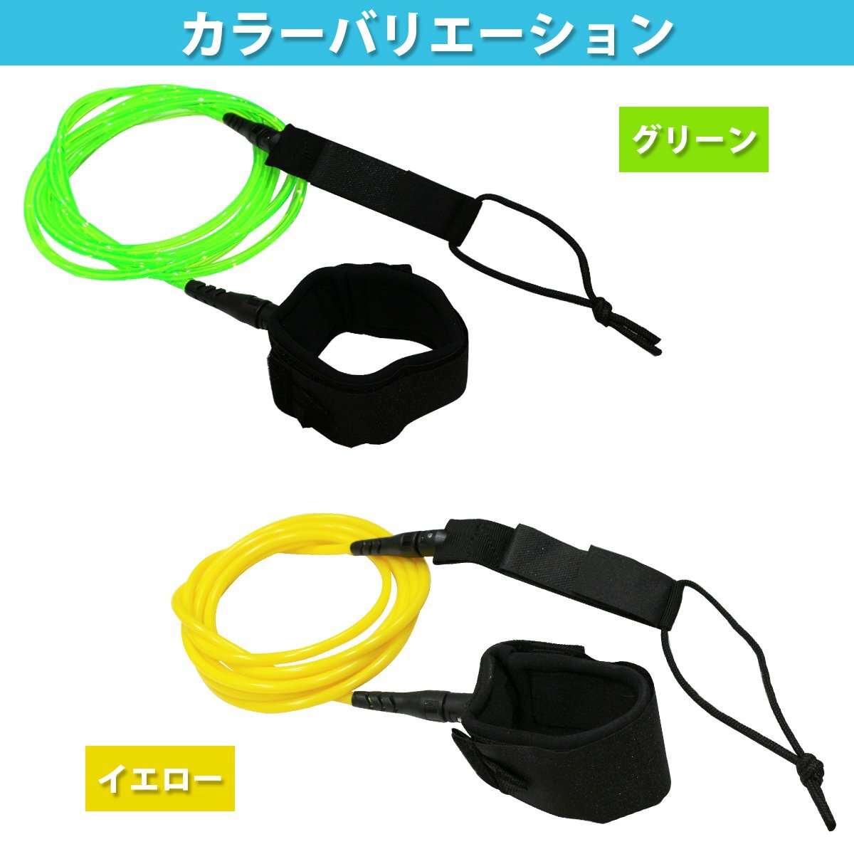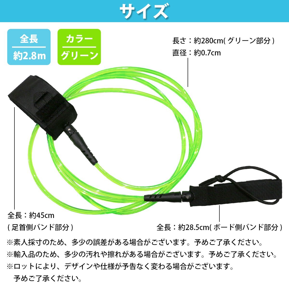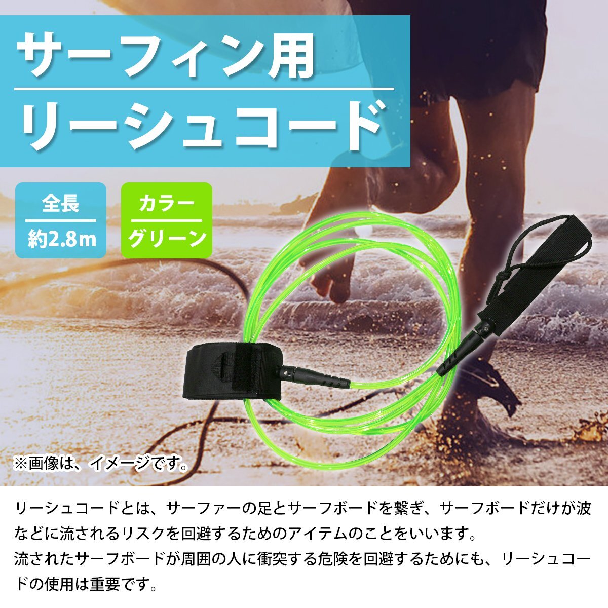【新品即納】サーフ リーシュ リーシュコード サーフィン流れ止め スタンダード ストレートリーシュ レギュラー7mm 10ft『グリーン』