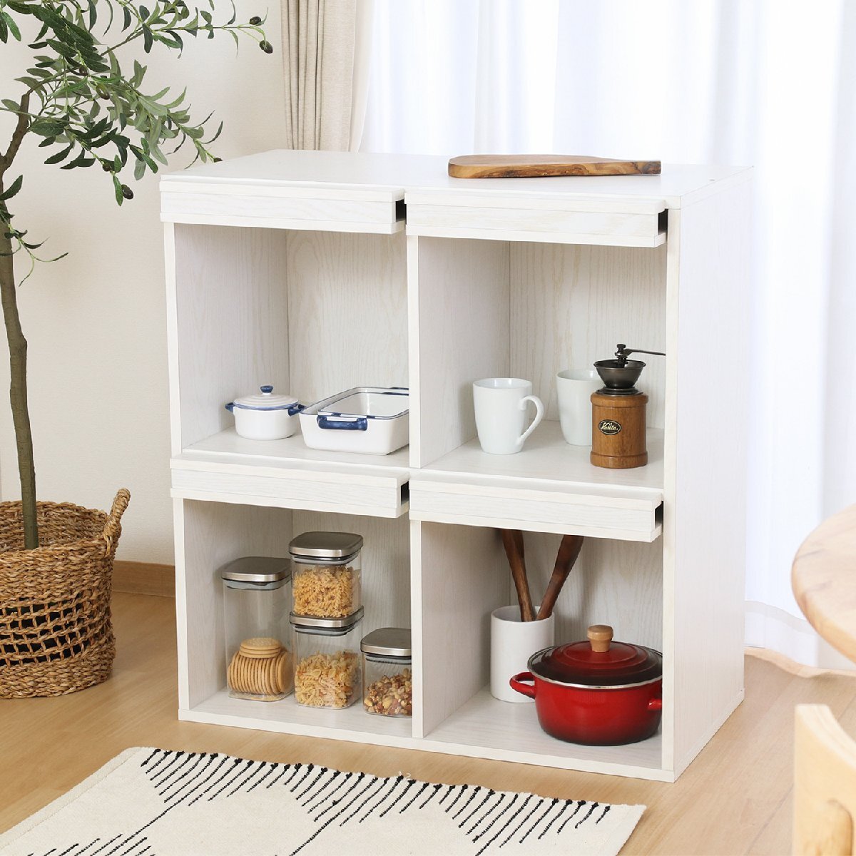 | 備 考 | ■扉部にディスプレイができるお洒落なラックです。 ■扉は空けたままカラーボックス風に使うこともできます。 |