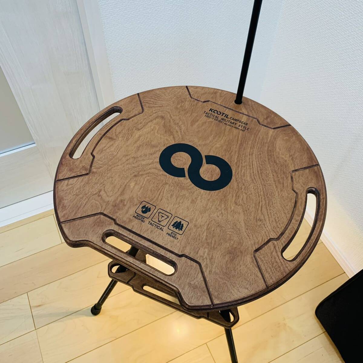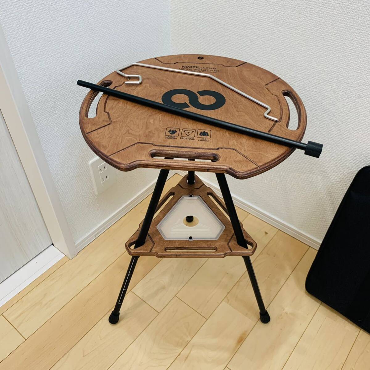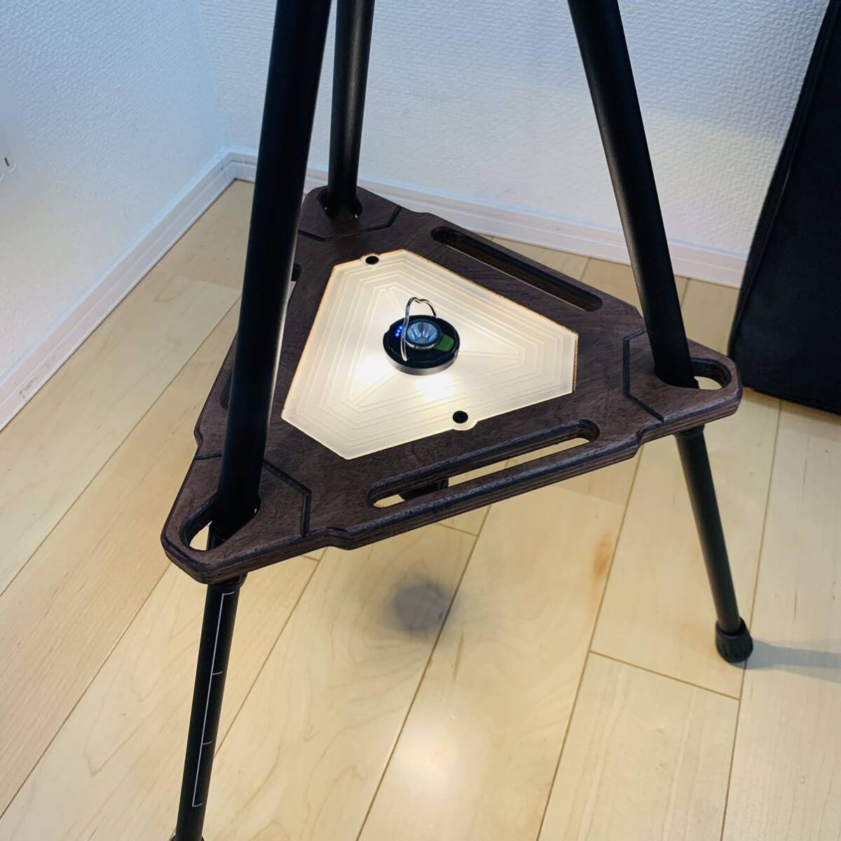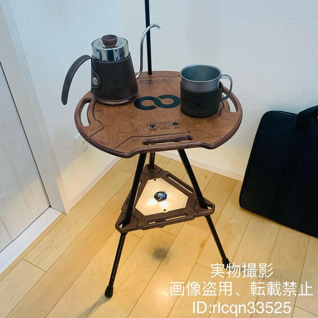 超激レア キャンプ 超高品質 3足円形テーブルとランタンスタンド セット 無段高さ調整 goalzero穴 径37cm 収納袋付 木製天板 アウトドア